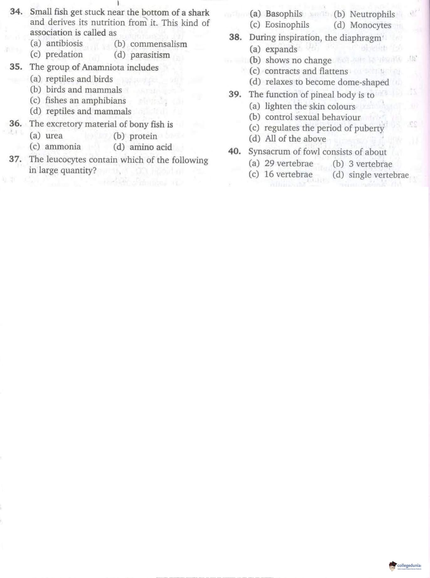 JIPMER 2016 Zoology Question paper with answer key pdf is available for download. The exam was successfully organized by Jawaharlal Institute of Postgraduate Medical Education and Research (JIPMER). The question paper comprised a total of 40.0 questions.