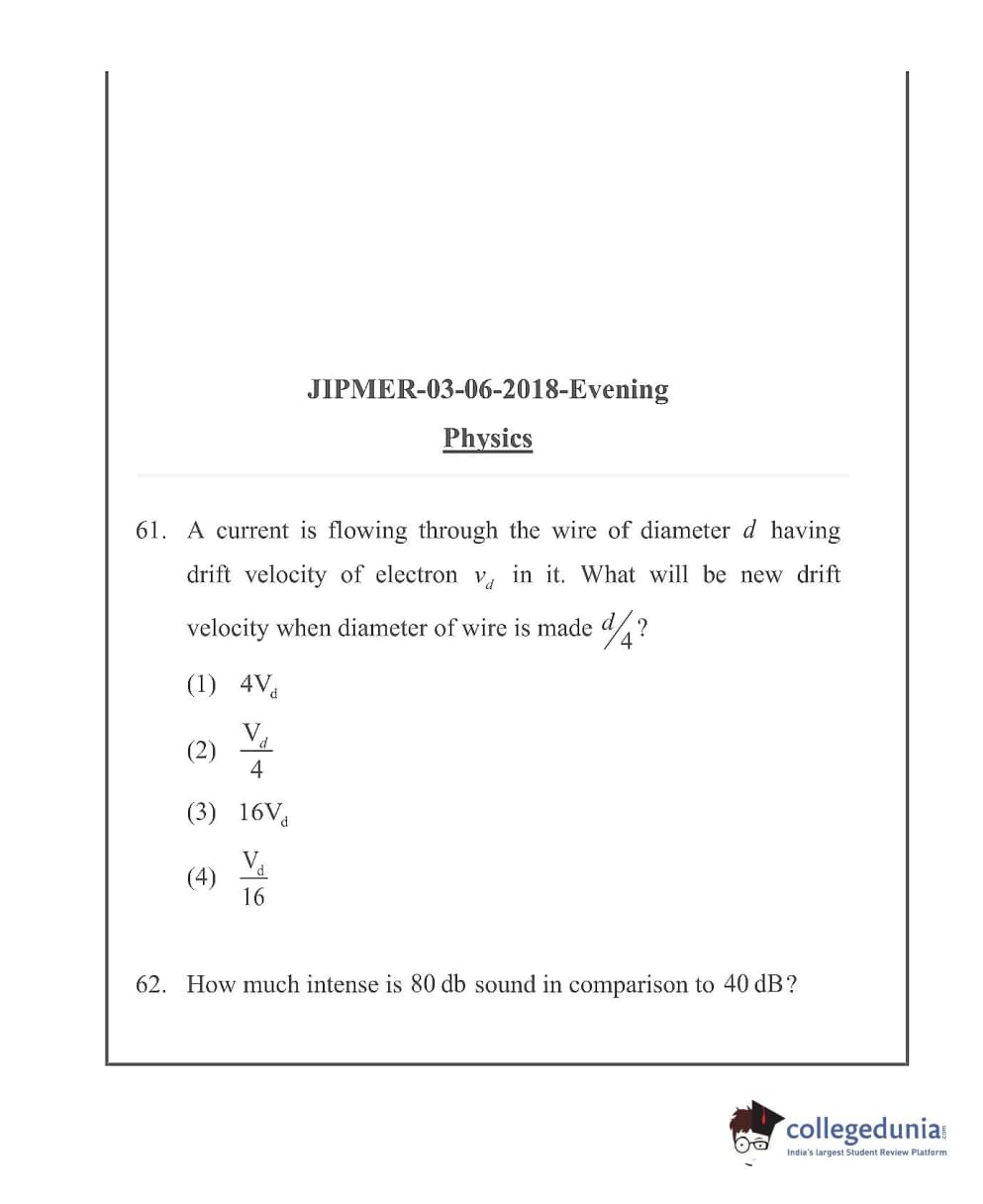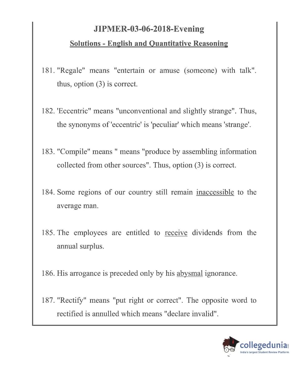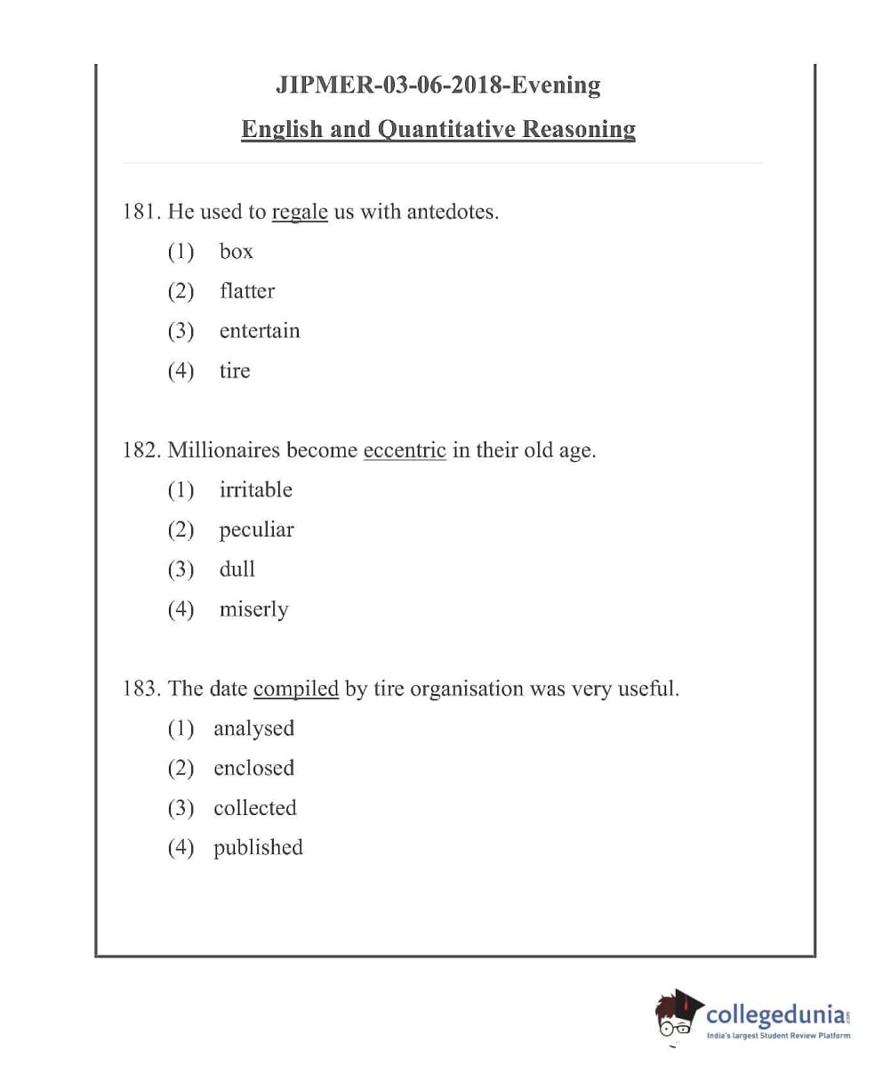JIPMER 2018 Question Paper with Answer Key PDF in English ,Evening Shift