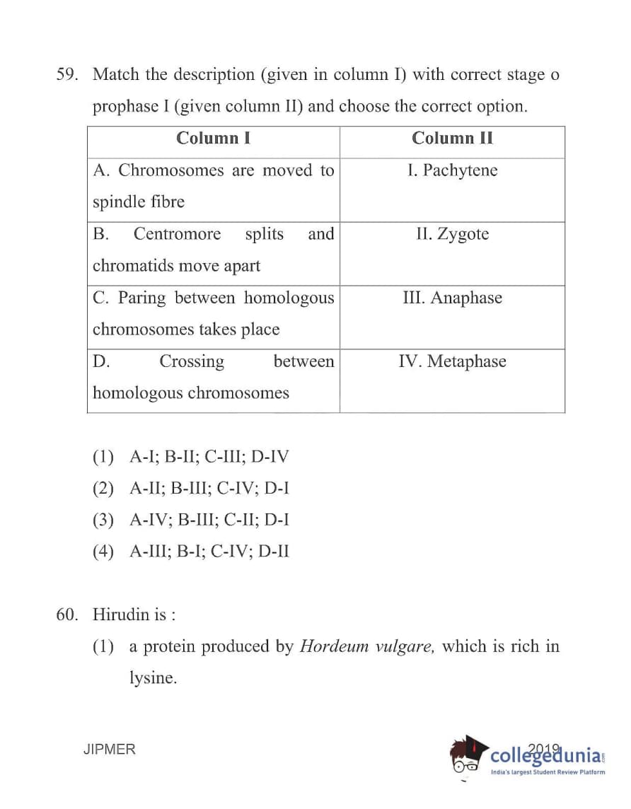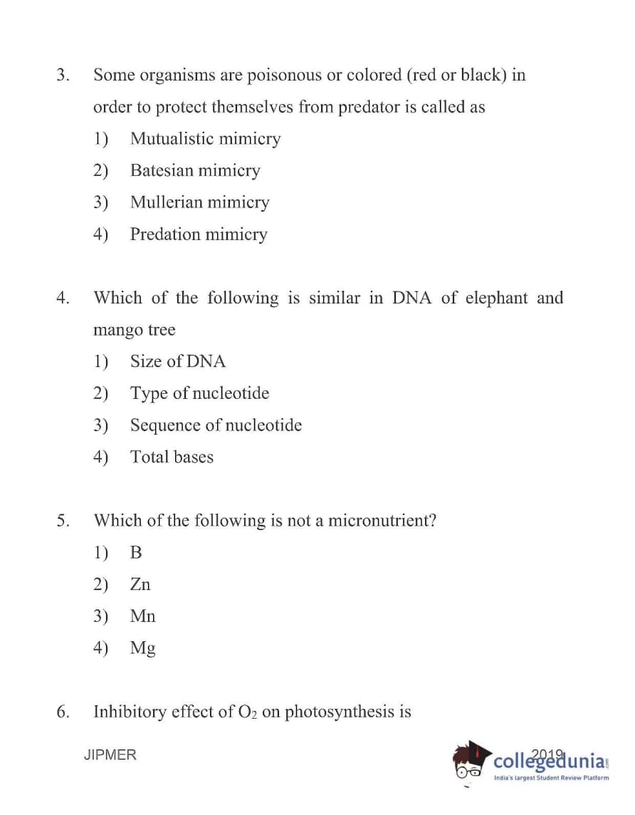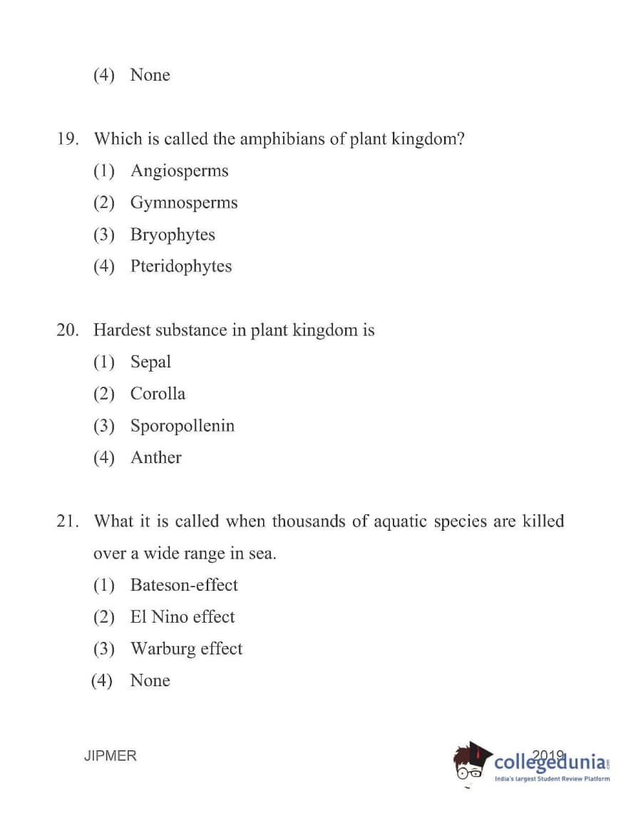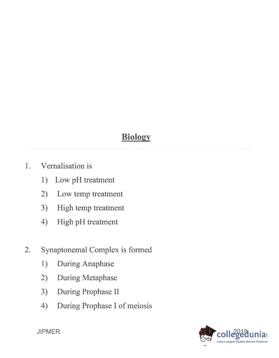 | JIPMER 2019 Biology Question Paper PDF | JIPMER 2019 Biology Answer Key PDF |