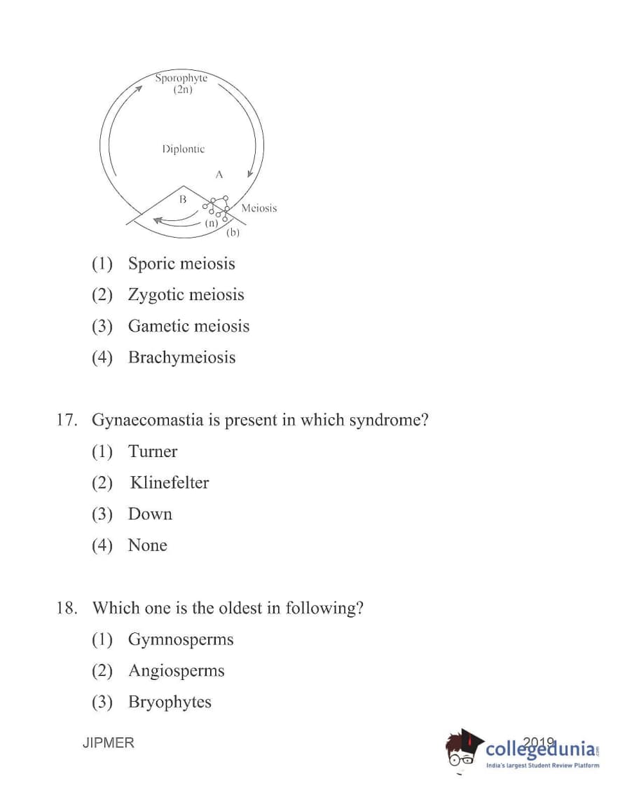 JIPMER 2019 Biology Question Paper with Answer Key PDF in English ,Morning Shift