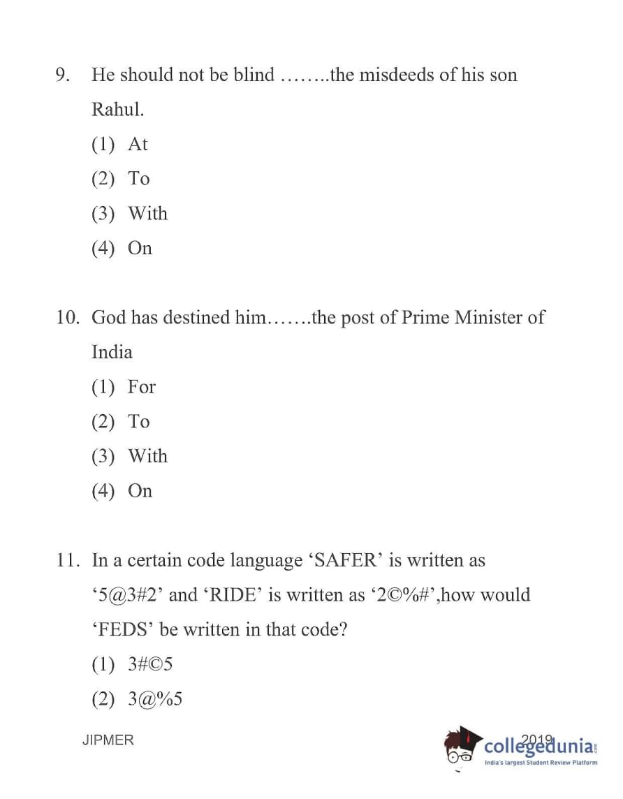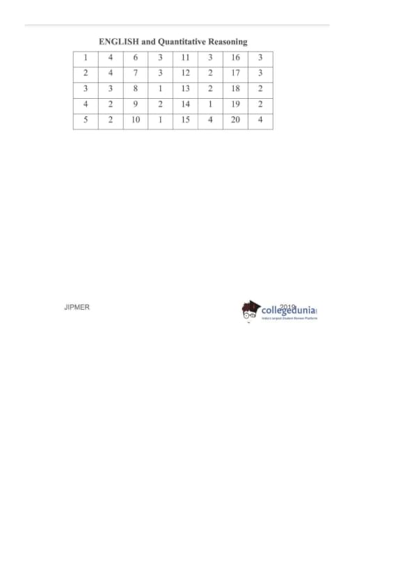 | JIPMER 2019 English and Quant Question Paper PDF | JIPMER 2019 English and Quant Answer Key PDF |