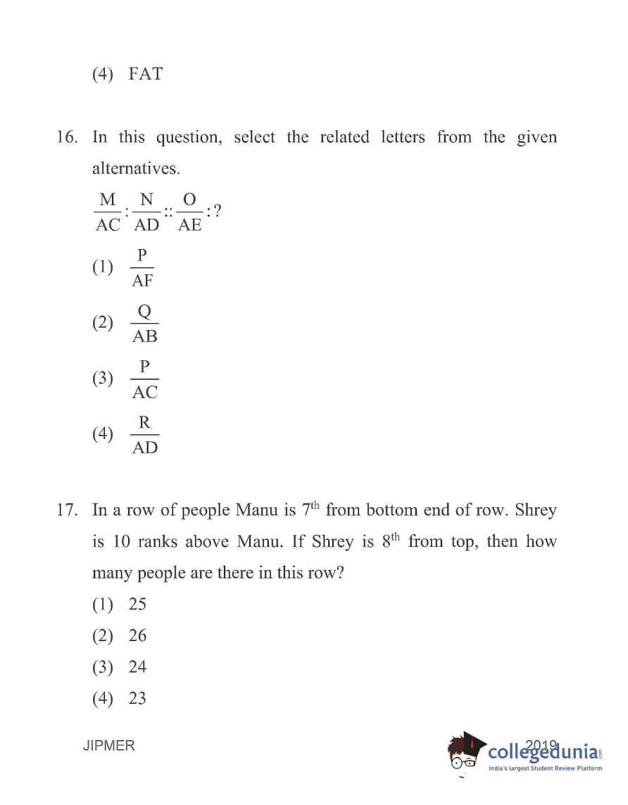 | JIPMER 2019 English and Quant Question Paper PDF | JIPMER 2019 English and Quant Answer Key PDF |