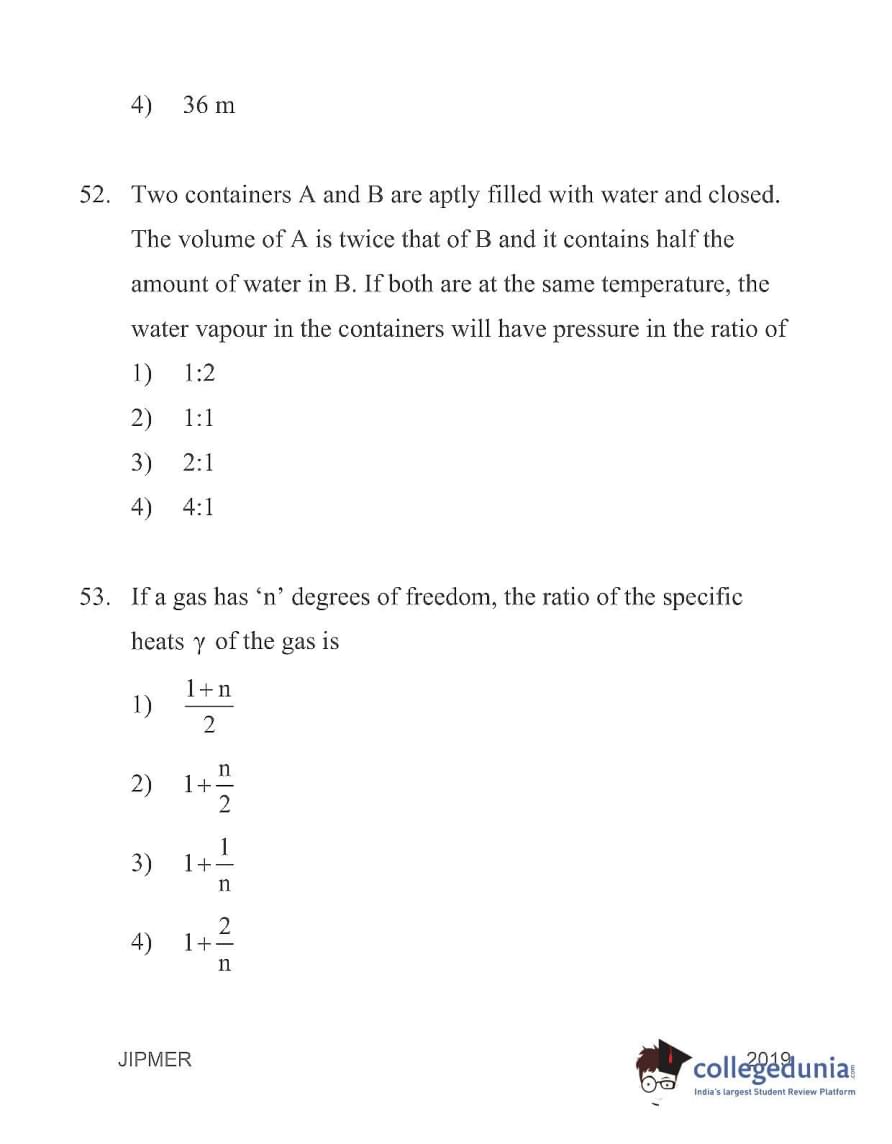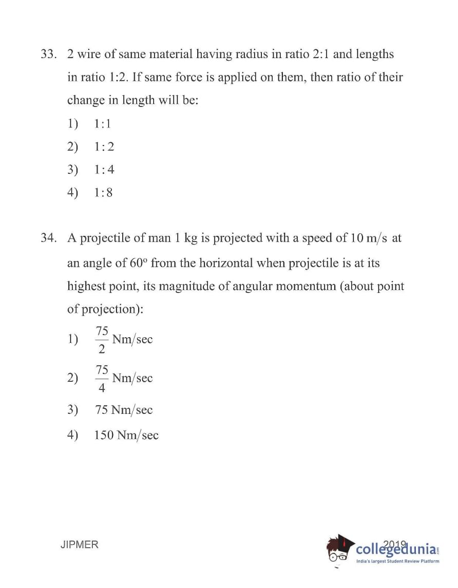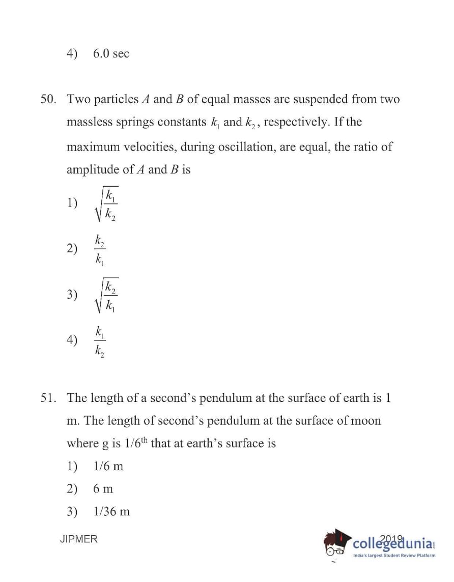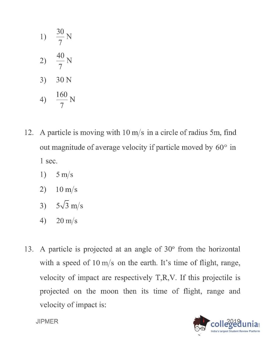 | JIPMER 2019 Physics Question Paper PDF | JIPMER 2019 Physics Answer Key PDF |