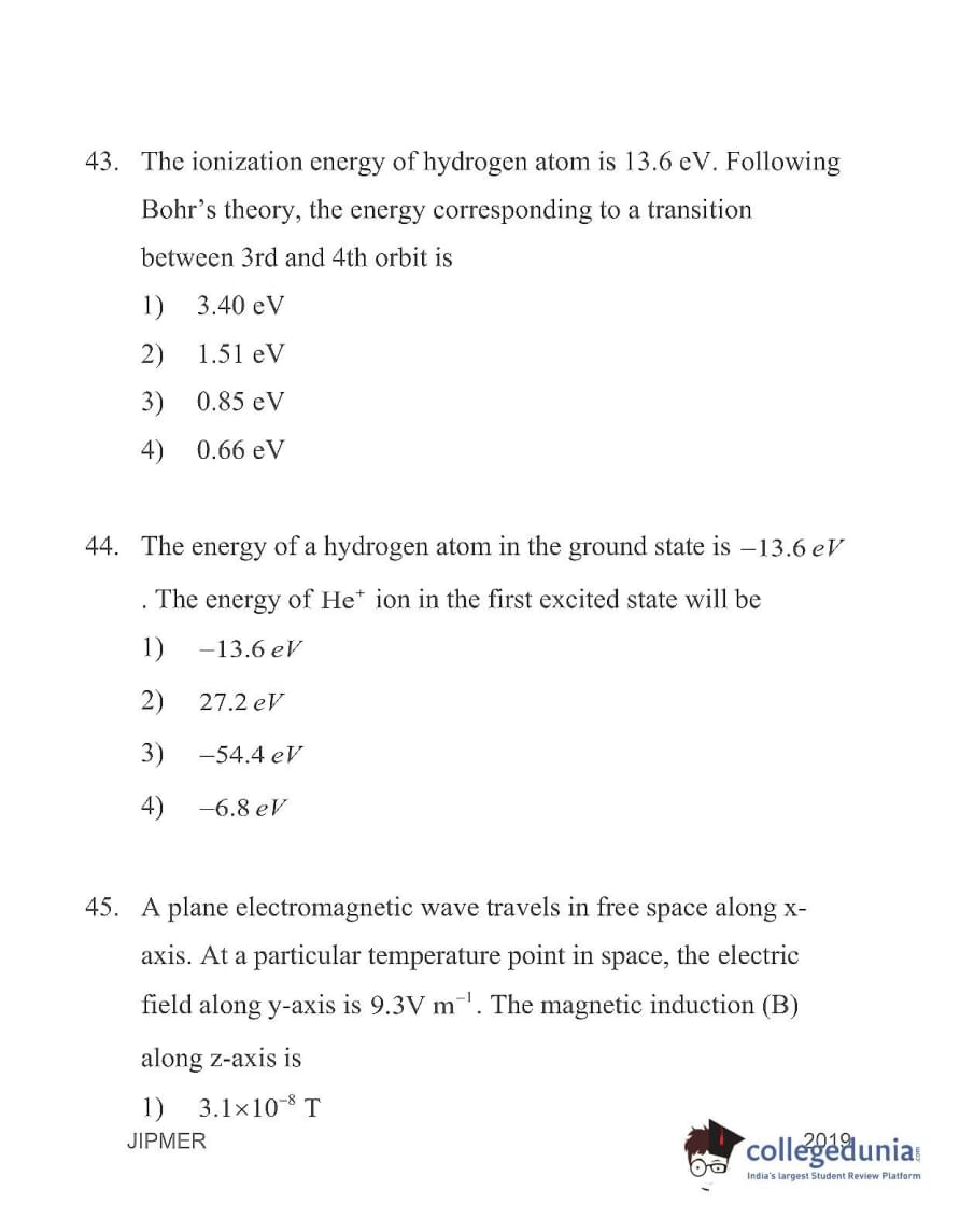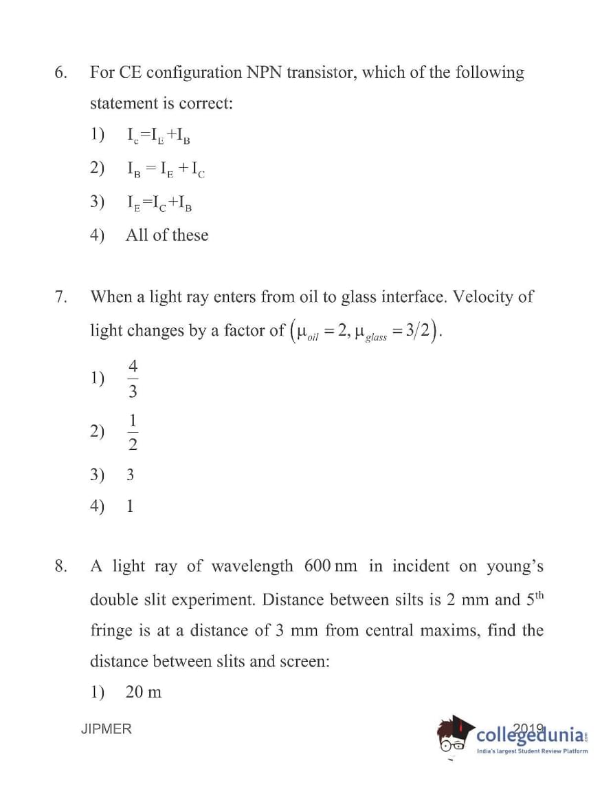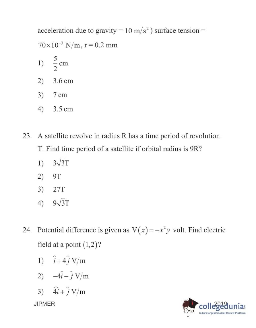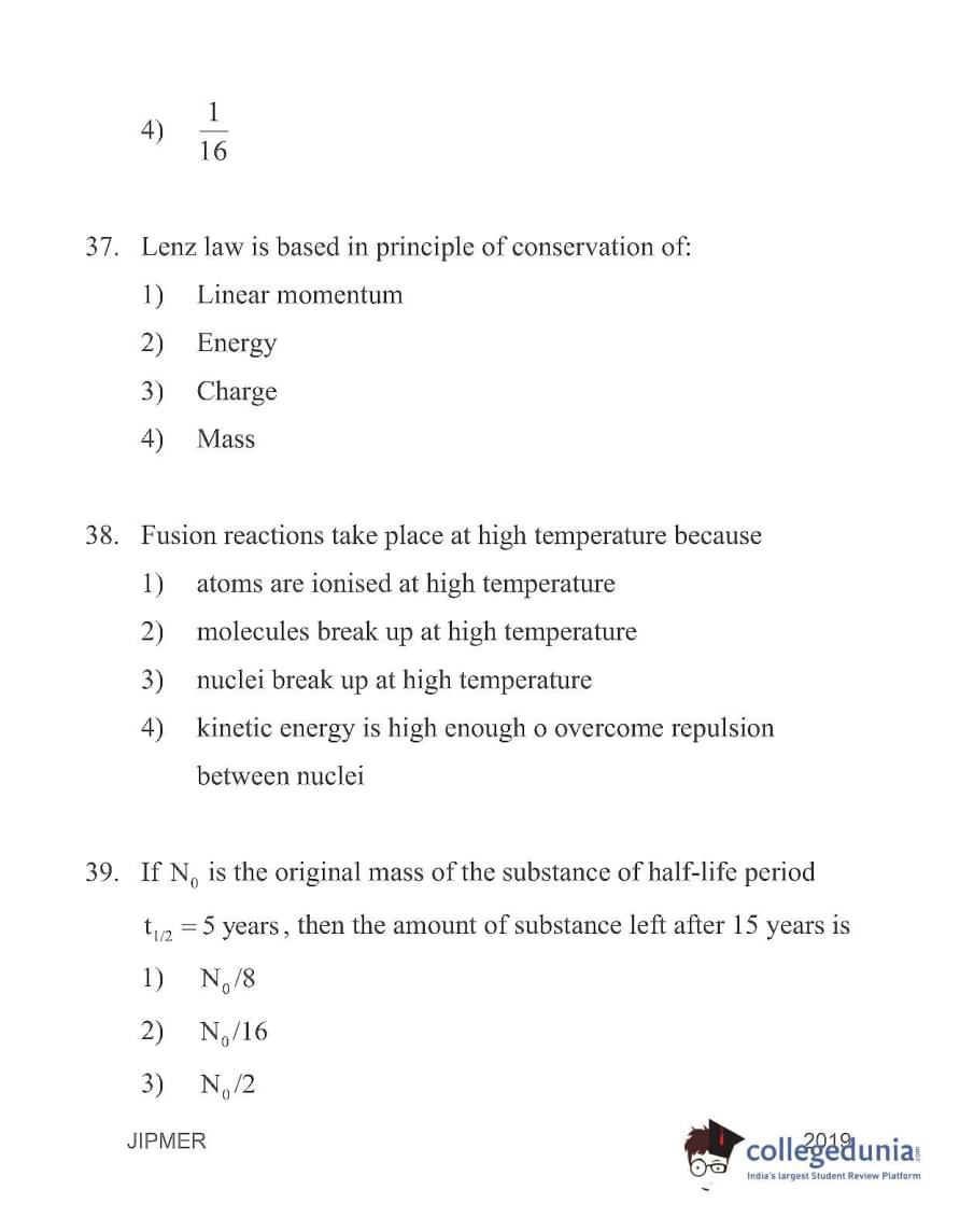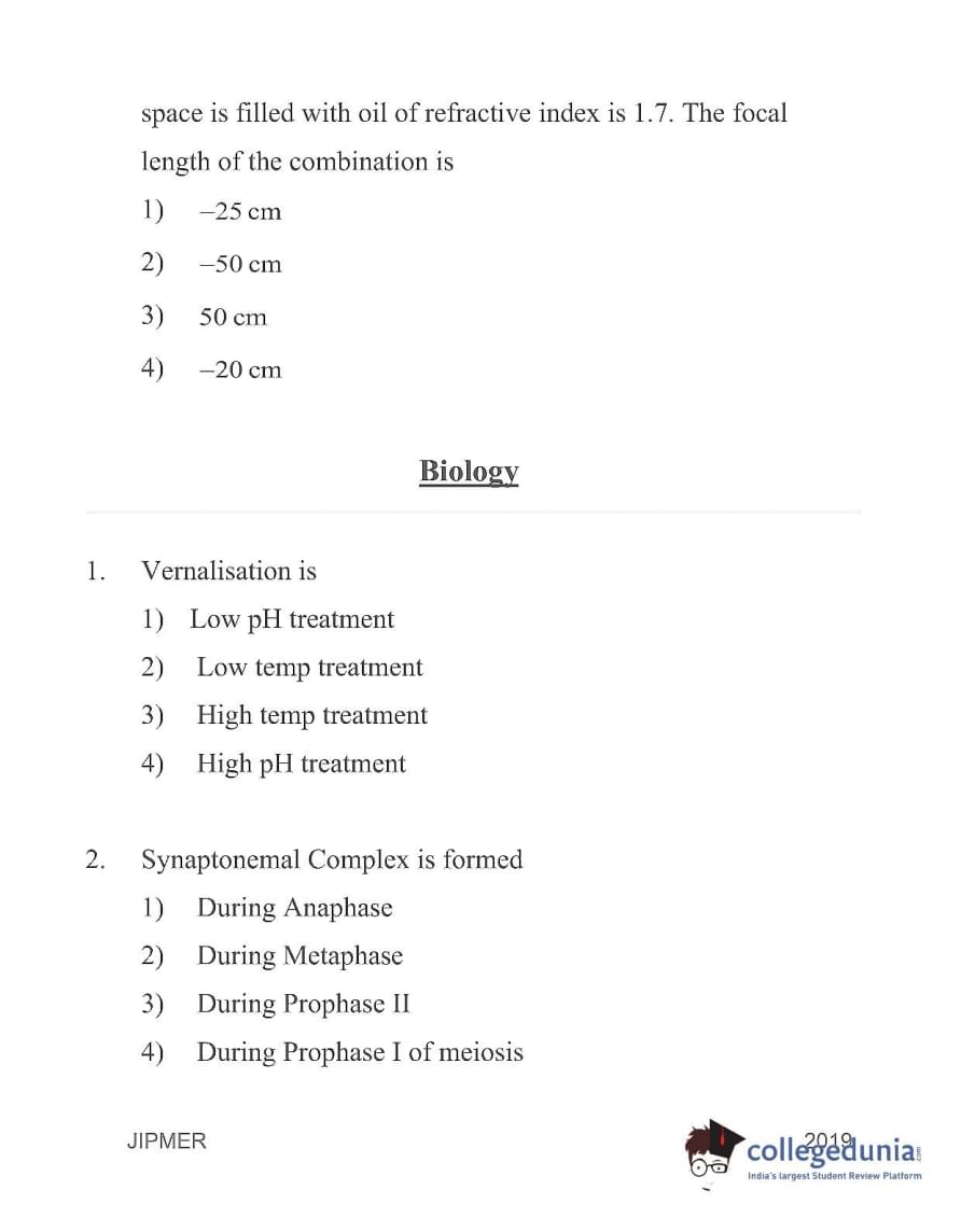 | JIPMER 2019 Physics Question Paper PDF | JIPMER 2019 Physics Answer Key PDF |