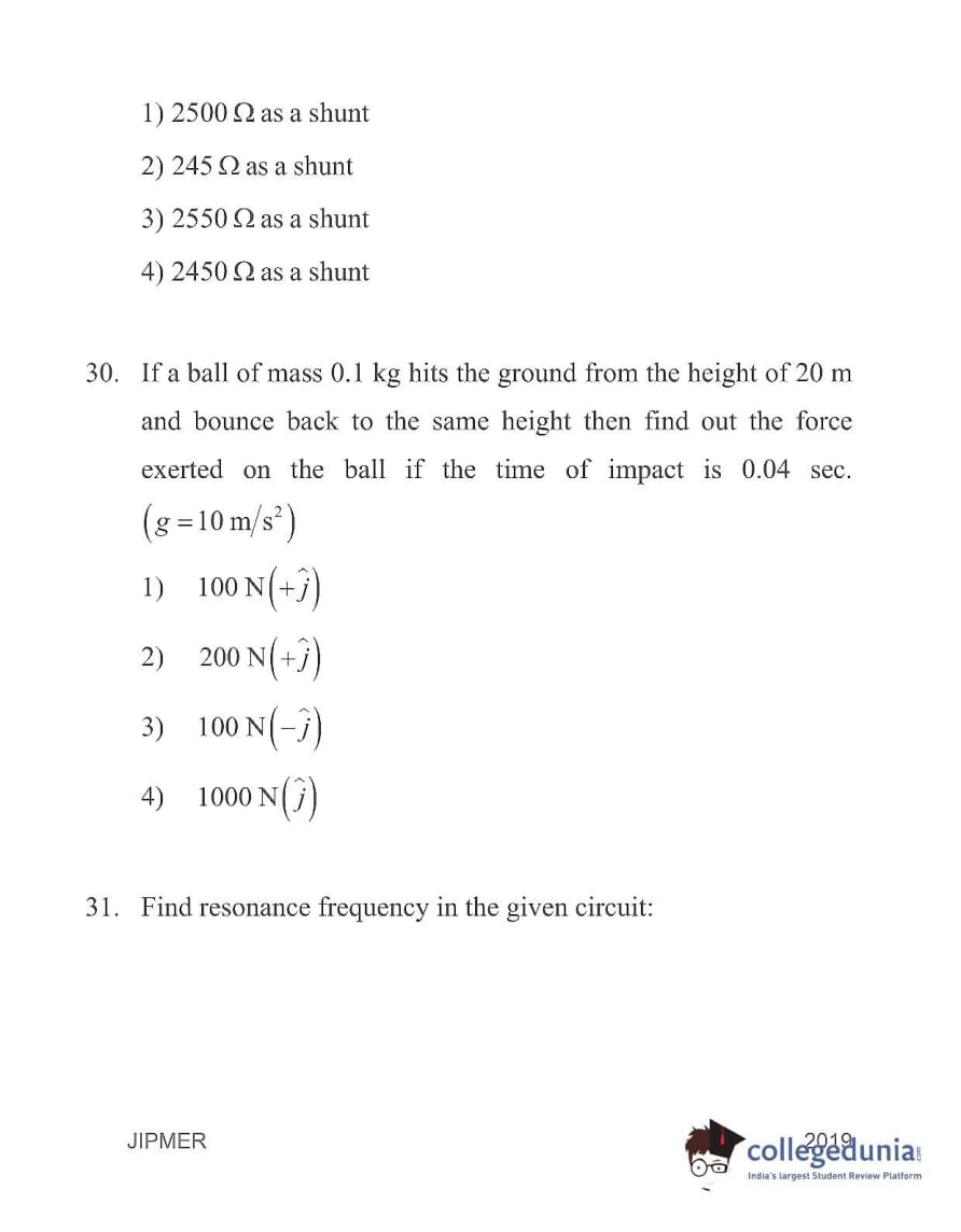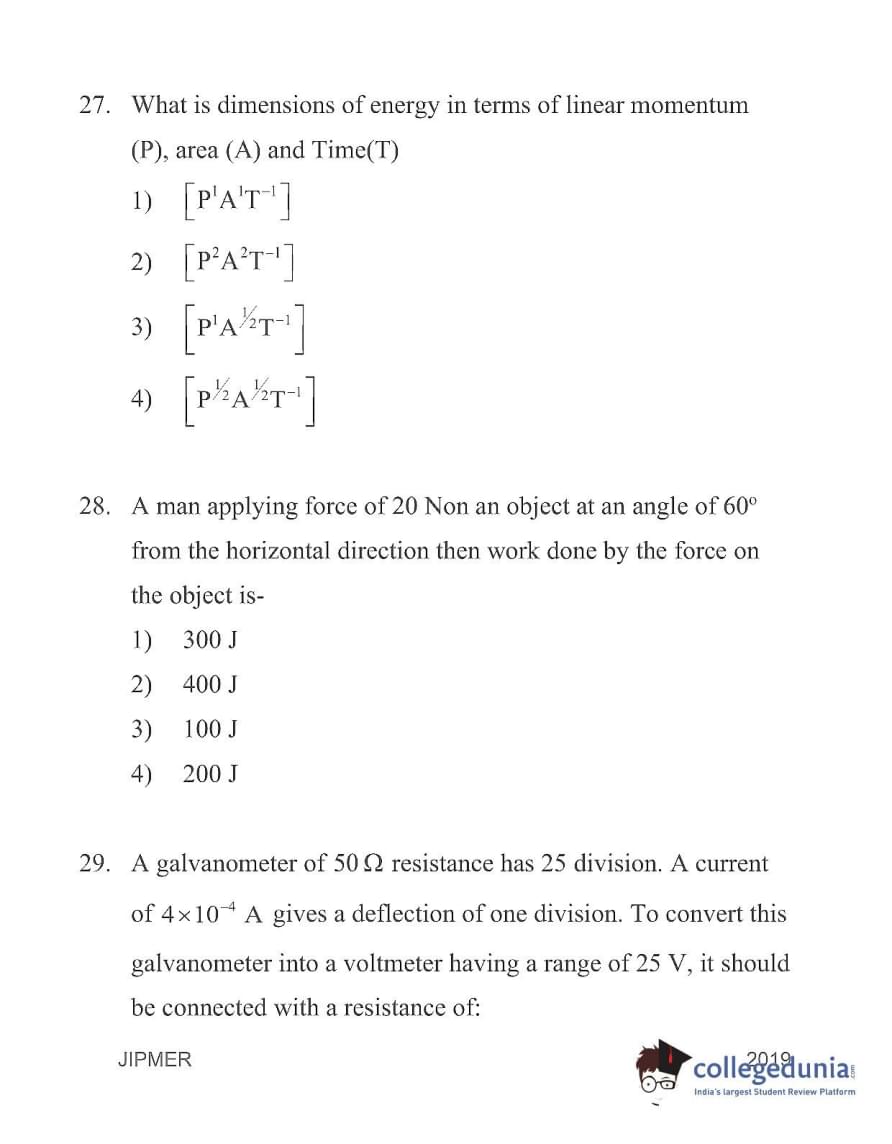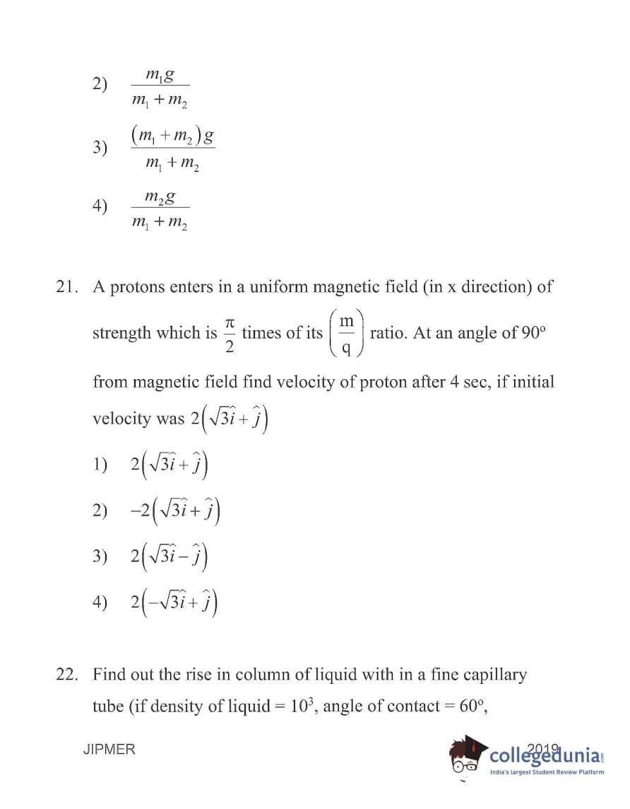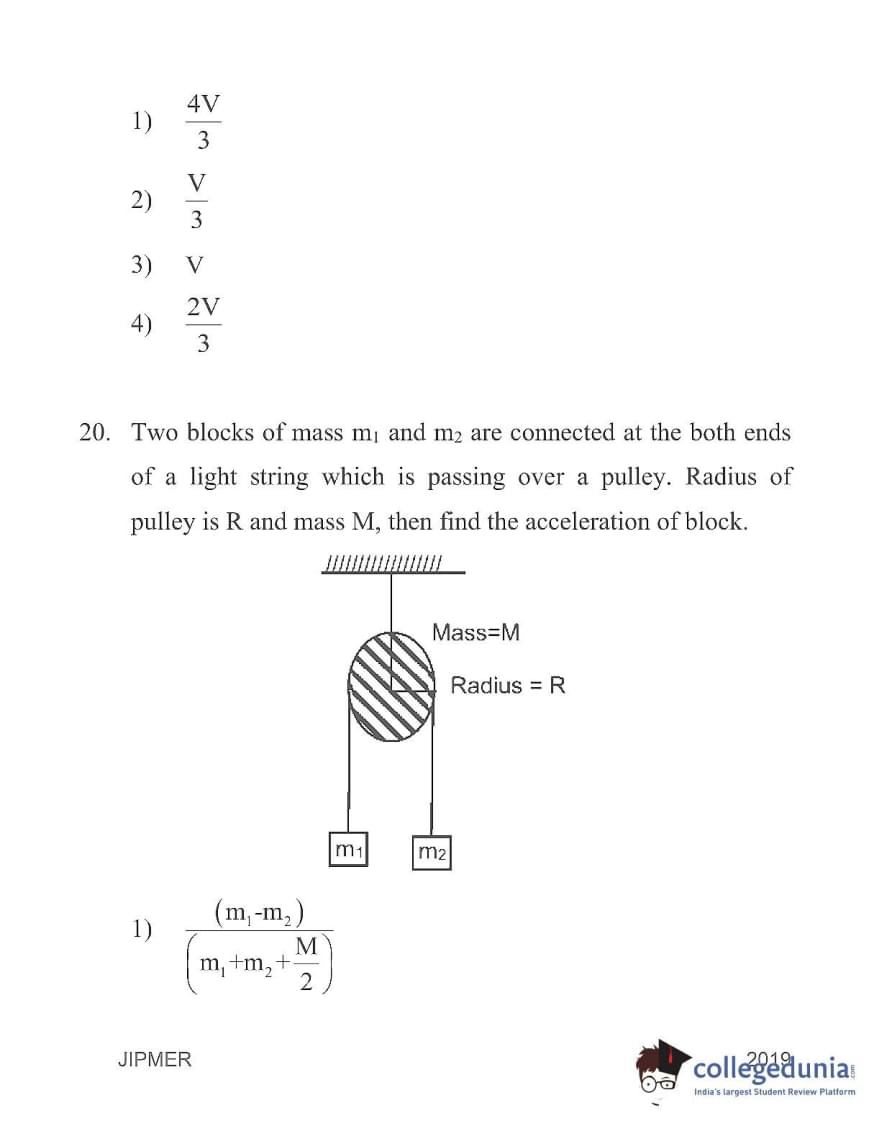 JIPMER 2019 Physics Question Paper with Answer Key PDF in English ,Morning Shift