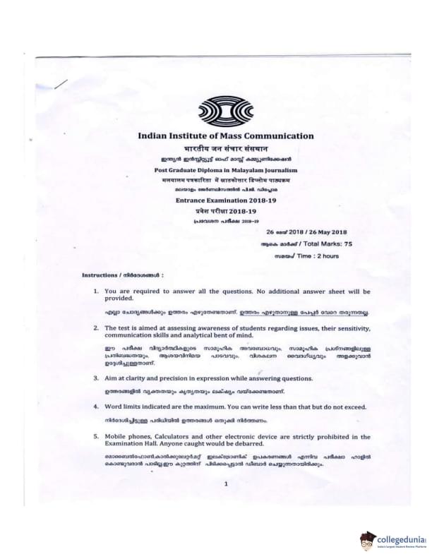 | IIMC 2018 Malyalam Journalism Question Paper PDF | IIMC 2018 Malyalam Journalism Answer Key PDF |