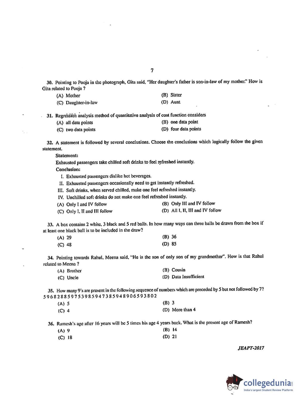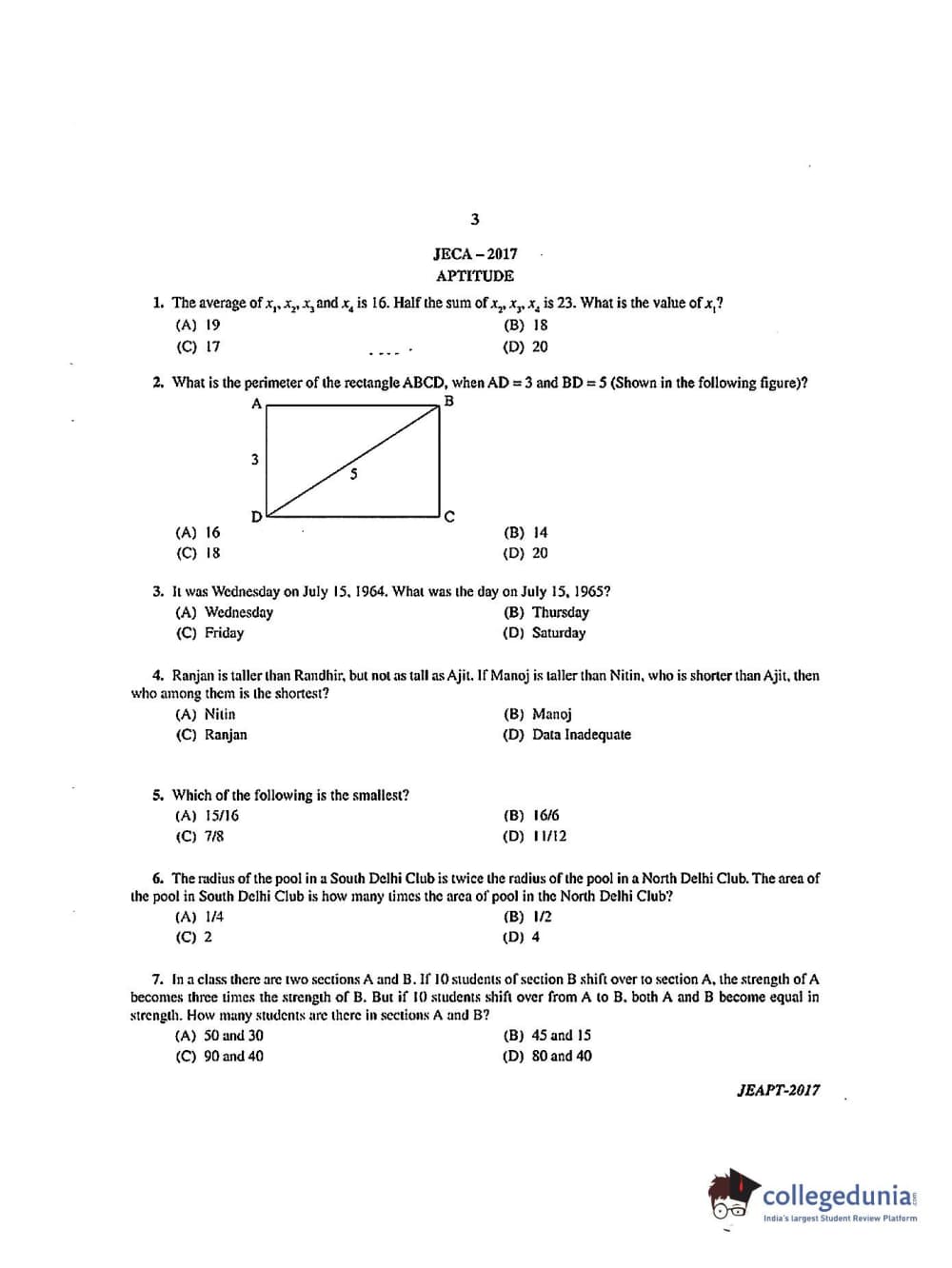| WB JECA 2017 Aptitude Question Paper PDF | WB JECA 2017 Aptitude Answer Key PDF |
