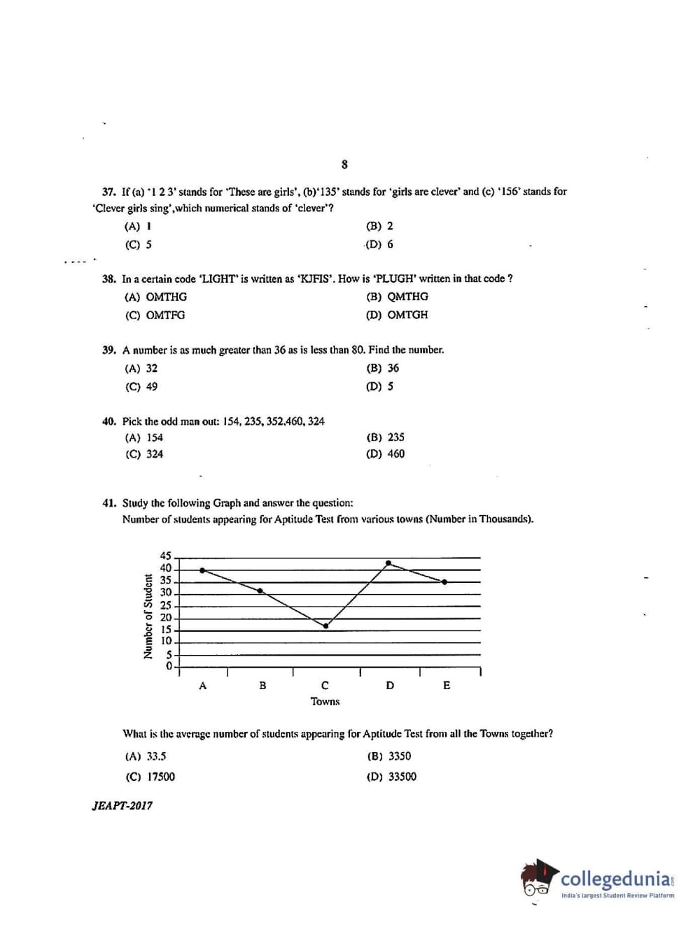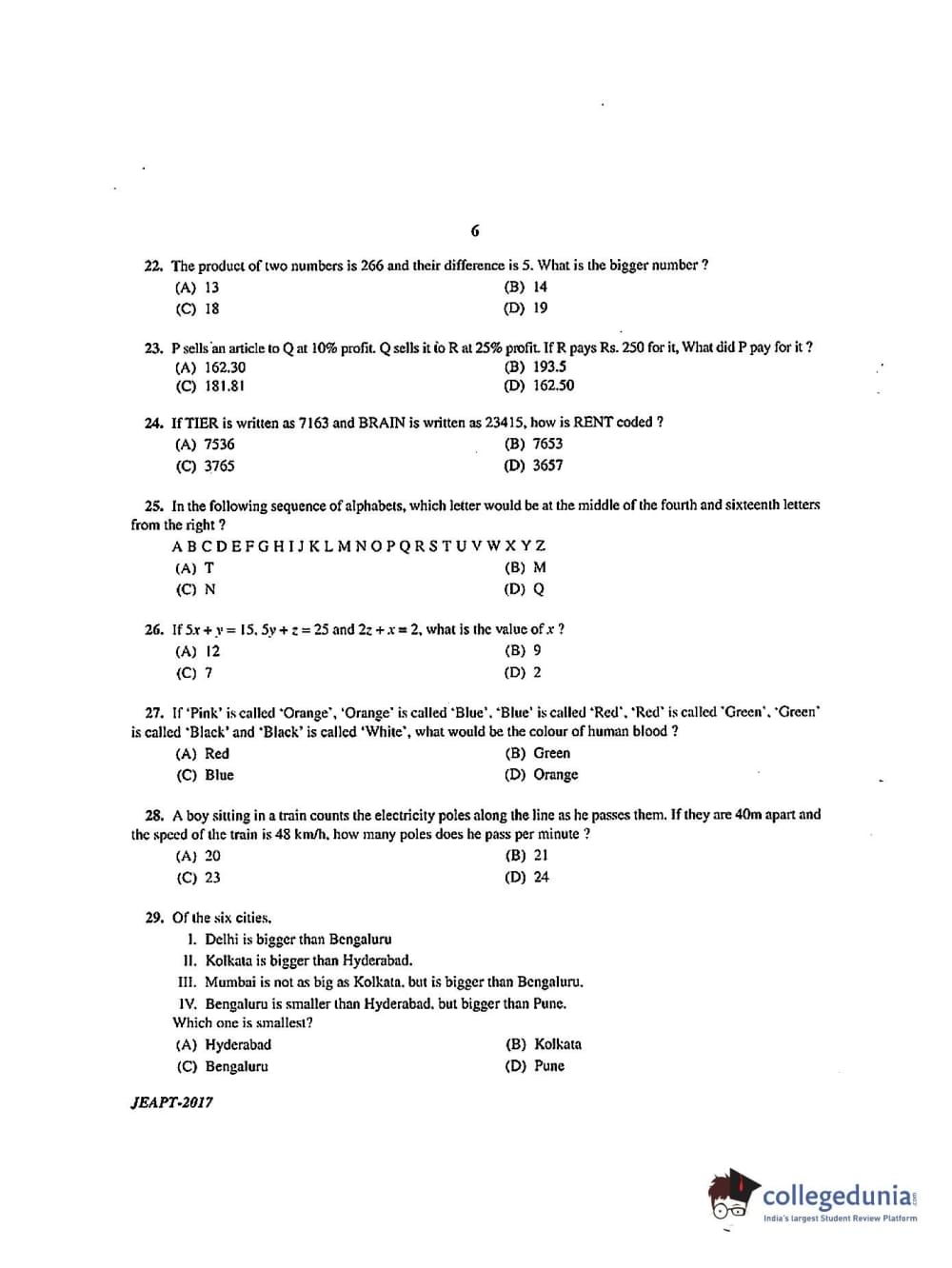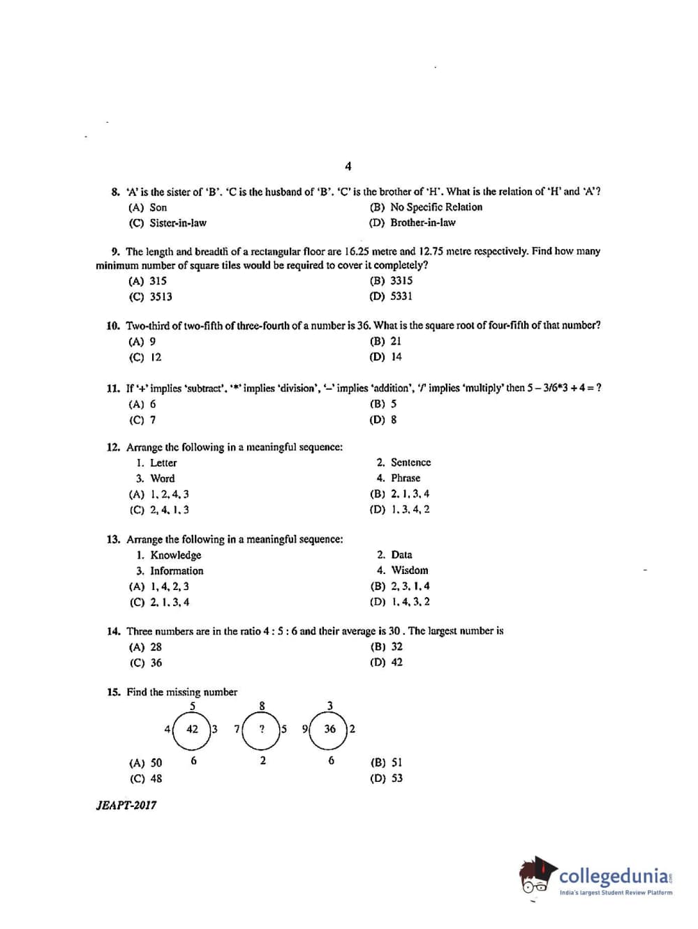 WB JECA 2017 Aptitude Question Paper with Answer Key PDFs in English