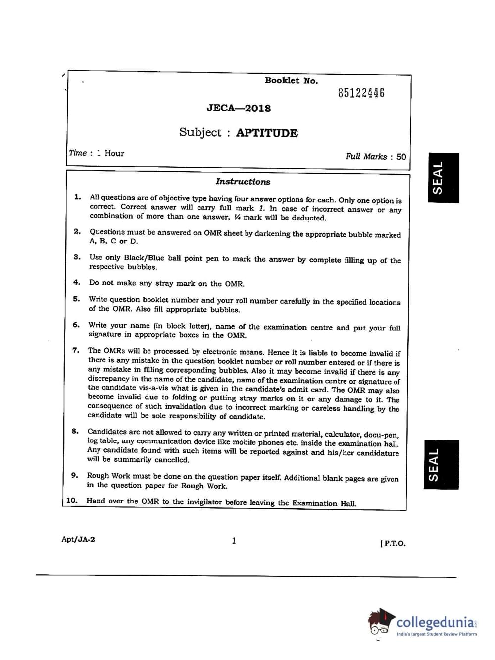 | WB JECA 2018 Aptitude Question Paper PDF | WB JECA 2018 Aptitude Answer Key PDF |