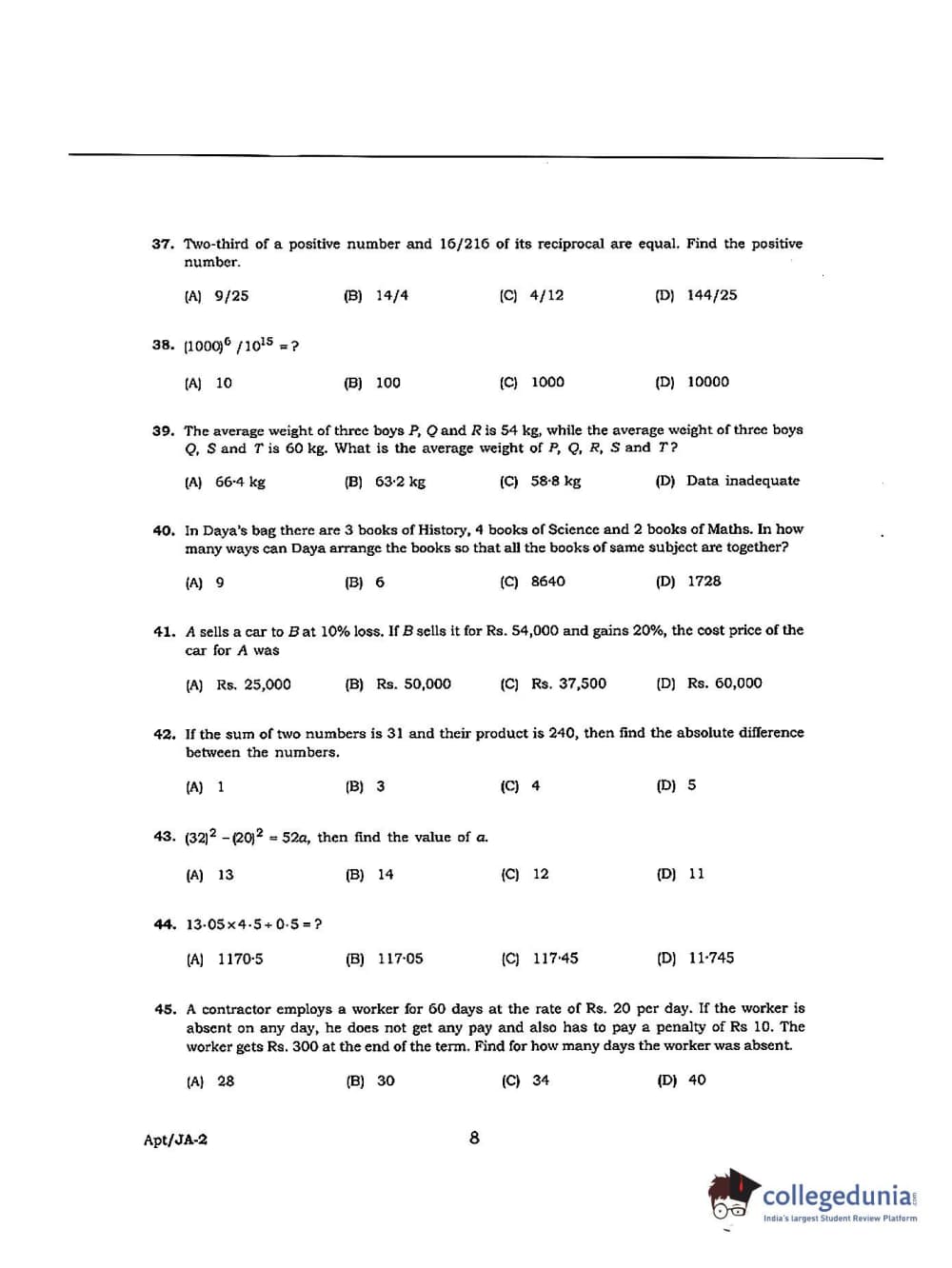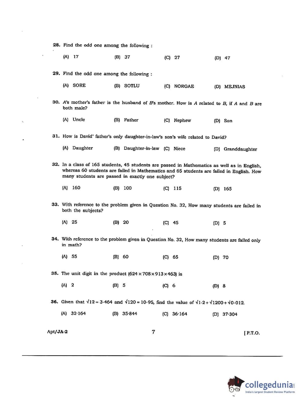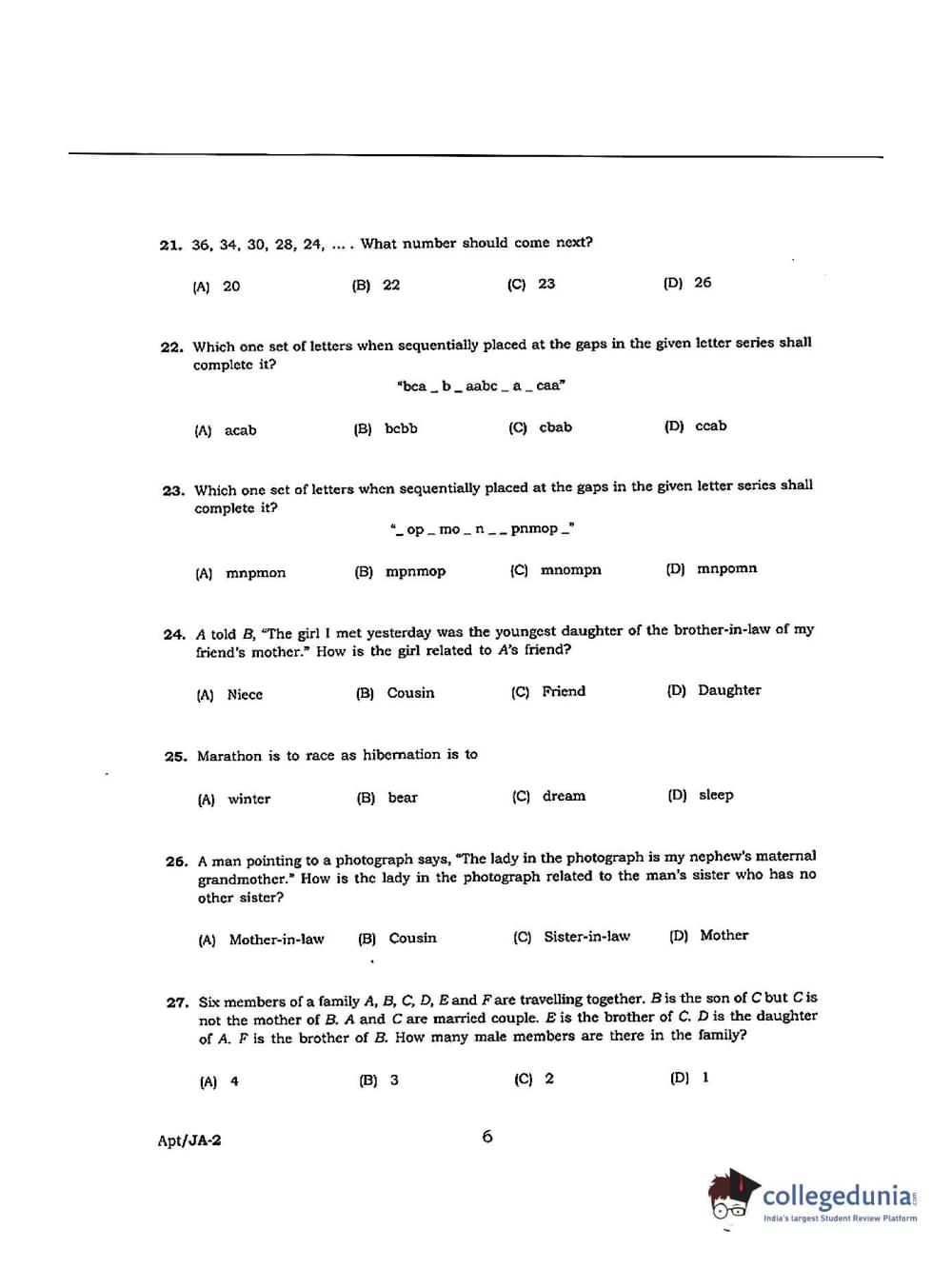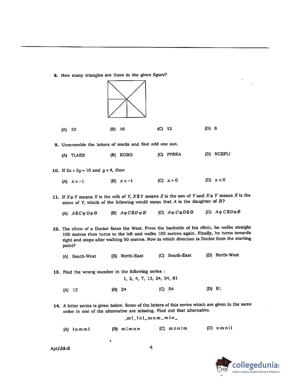 WB JECA 2018 Aptitude Question Paper with Answer Key PDFs