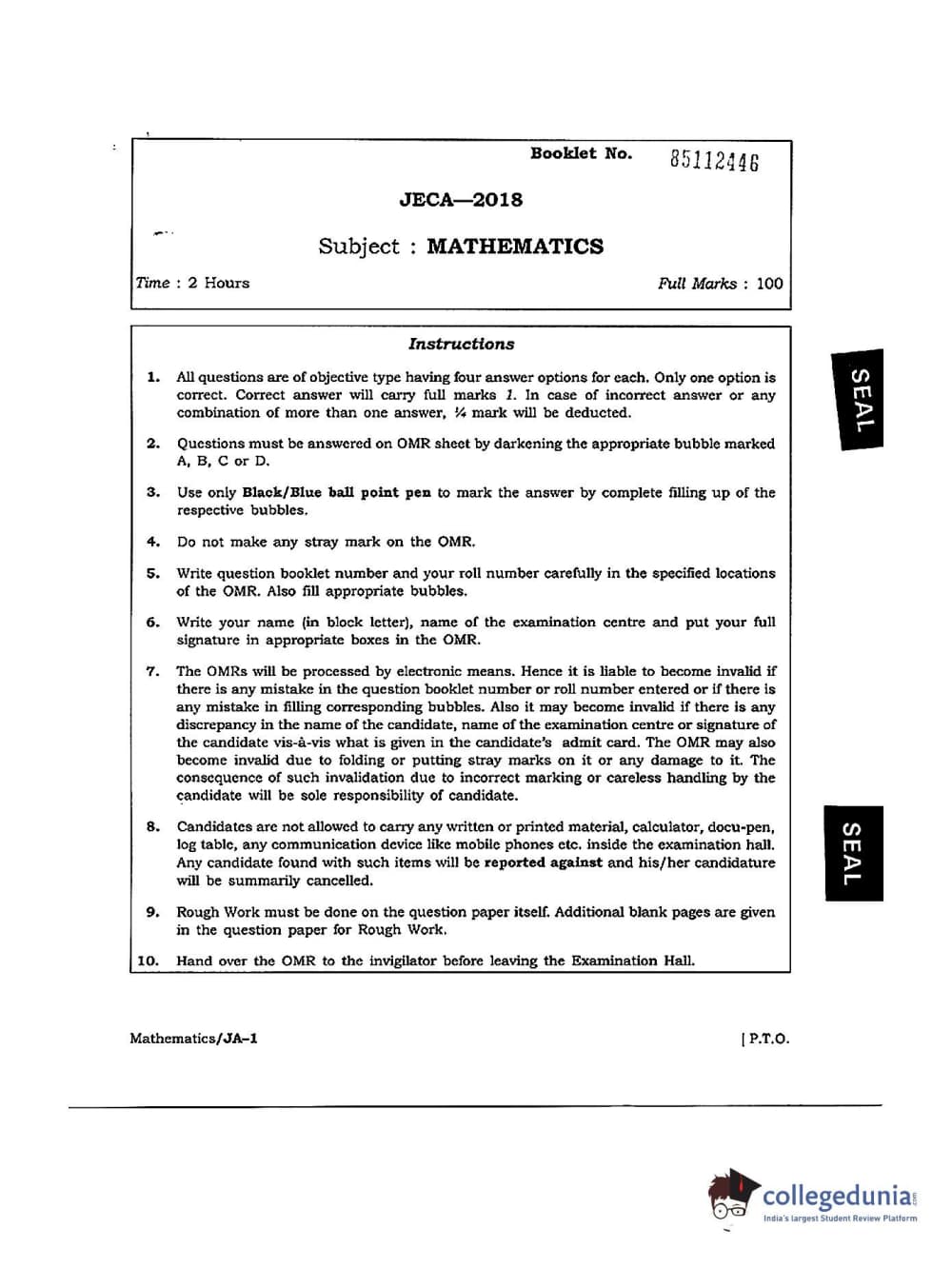 | WB JECA 2018 Mathematics Question Paper PDF | WB JECA 2018 Mathematics Answer Key PDF |