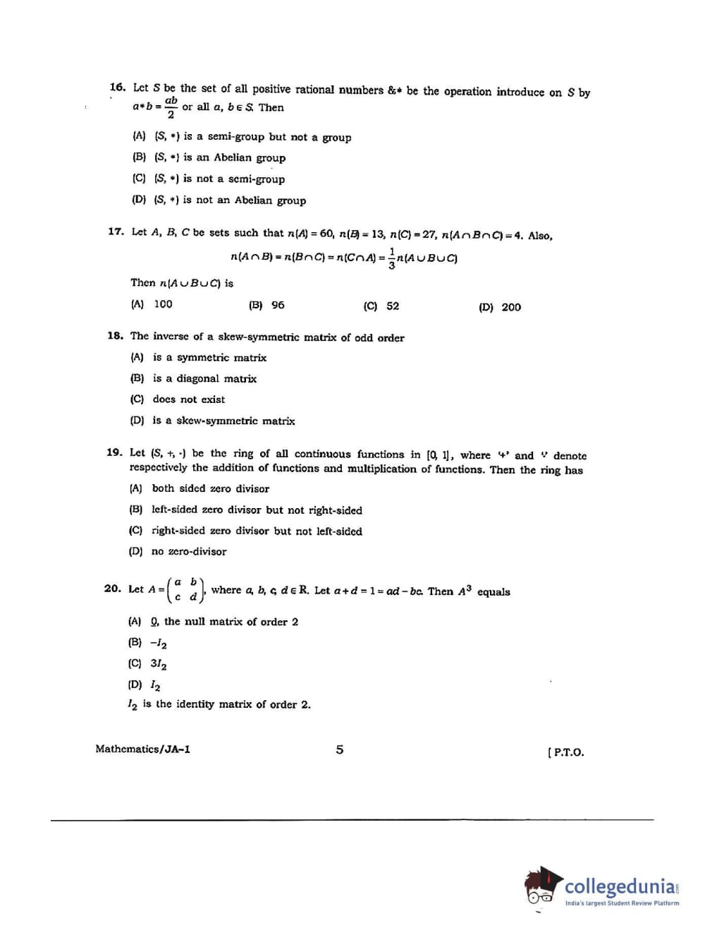WB JECA 2018 Mathematics Question paper with answer key pdf conducted on June 23, 2018 is available for download. The exam was successfully organized by The West Bengal Joint Entrance Examination Board. The question paper comprised a total of 150 questions divided among two sections.