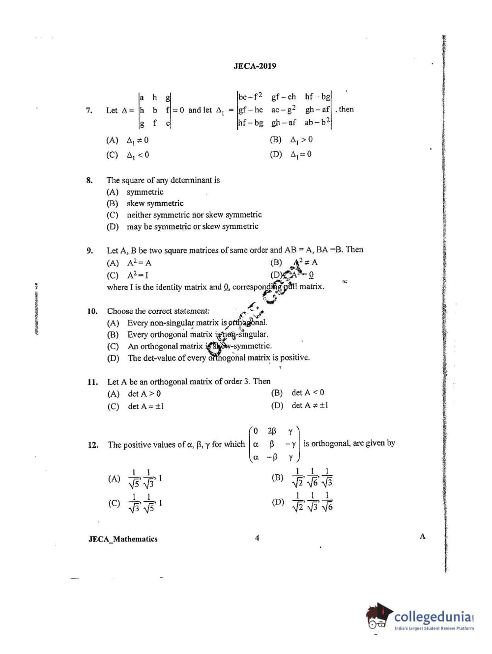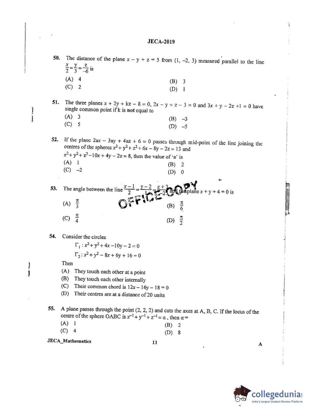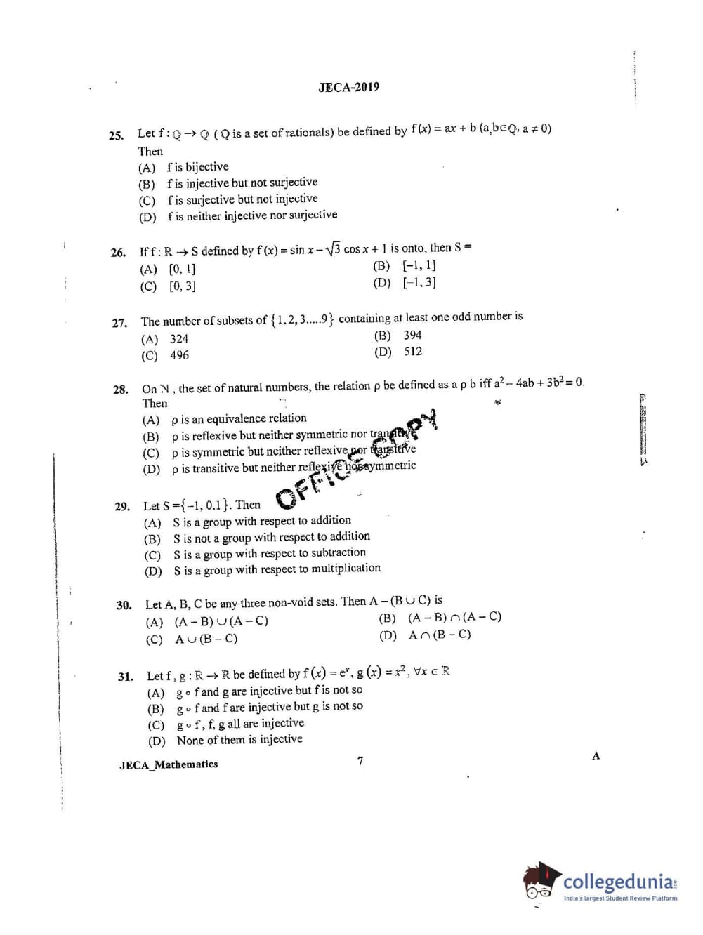 | WB JECA 2019 Mathematics Question Paper PDF | WB JECA 2019 Mathematics Answer Key PDF |