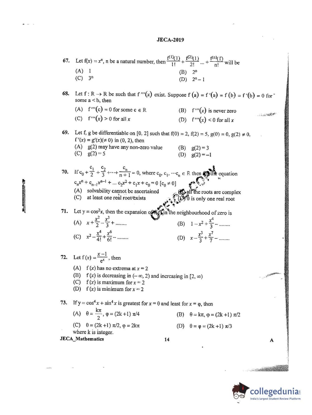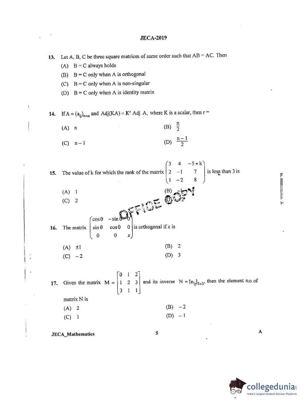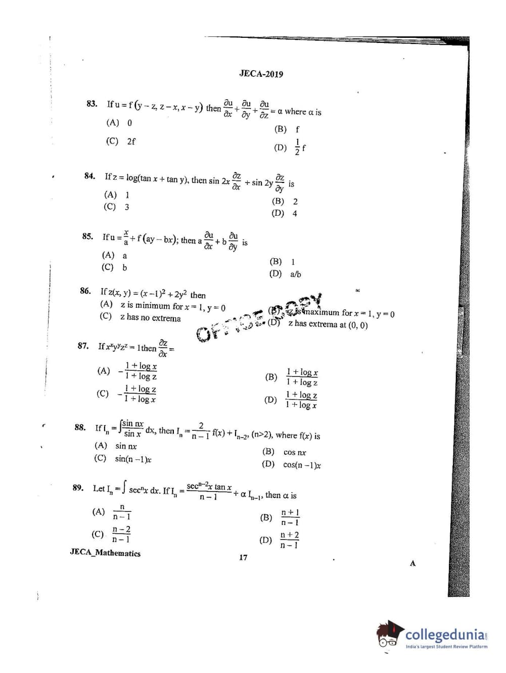 | WB JECA 2019 Mathematics Question Paper PDF | WB JECA 2019 Mathematics Answer Key PDF |
