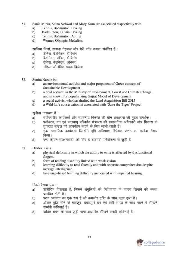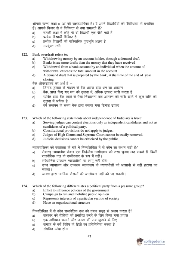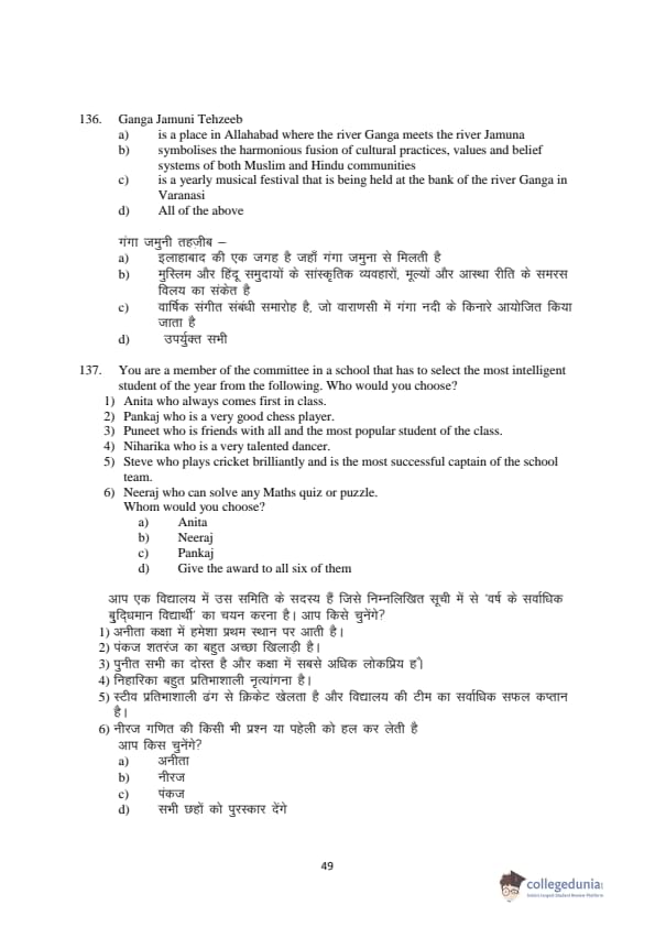DU B.Ed Entrance Exam 2015 Question Paper with Answer Key PDF