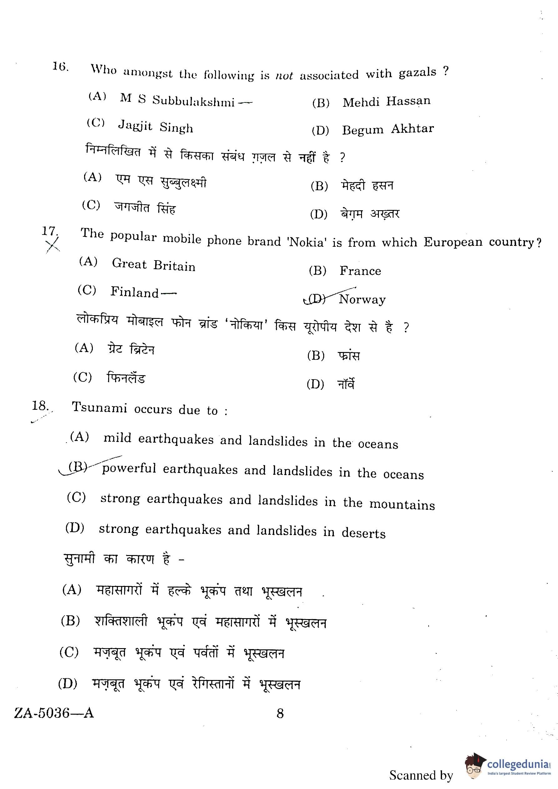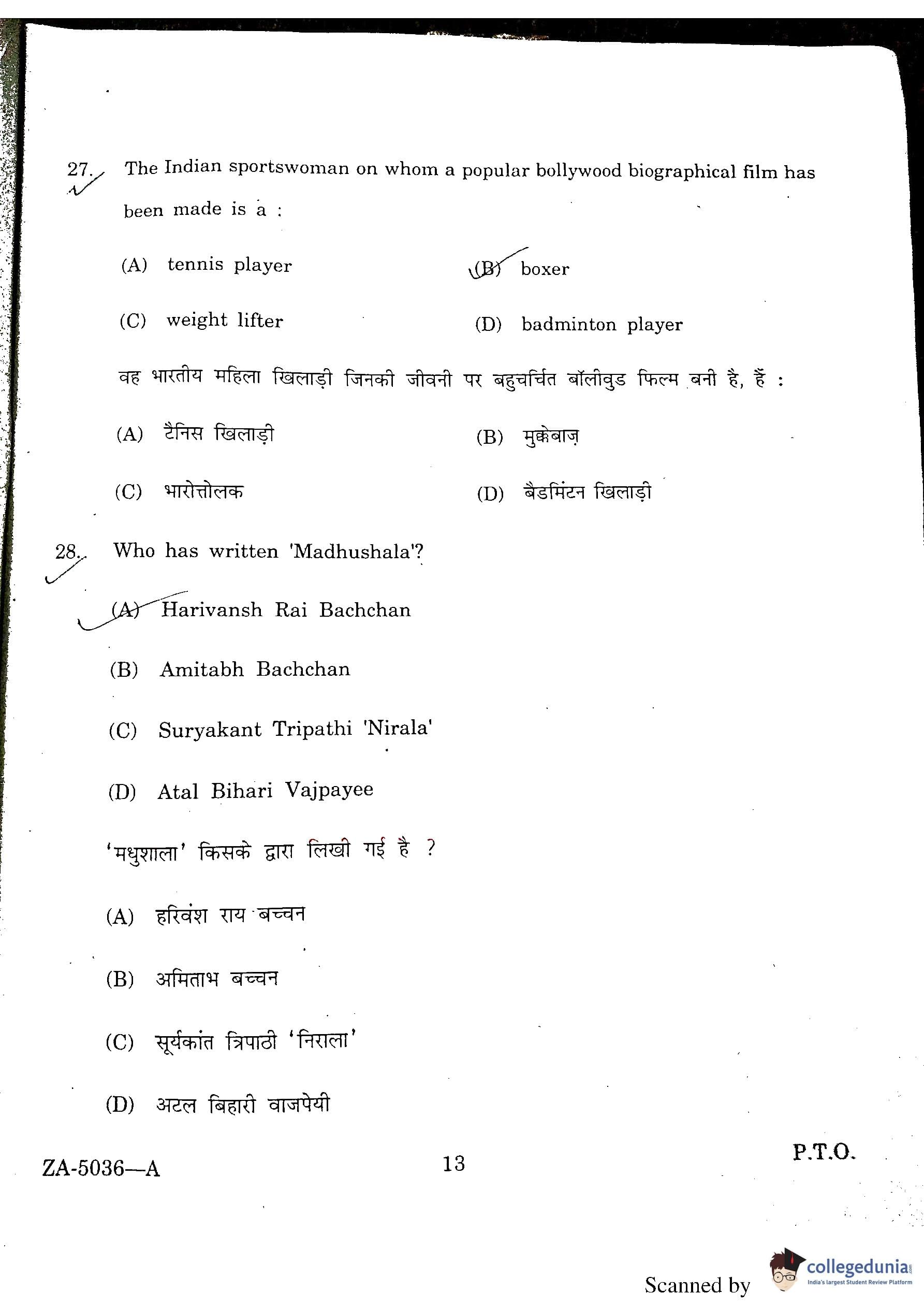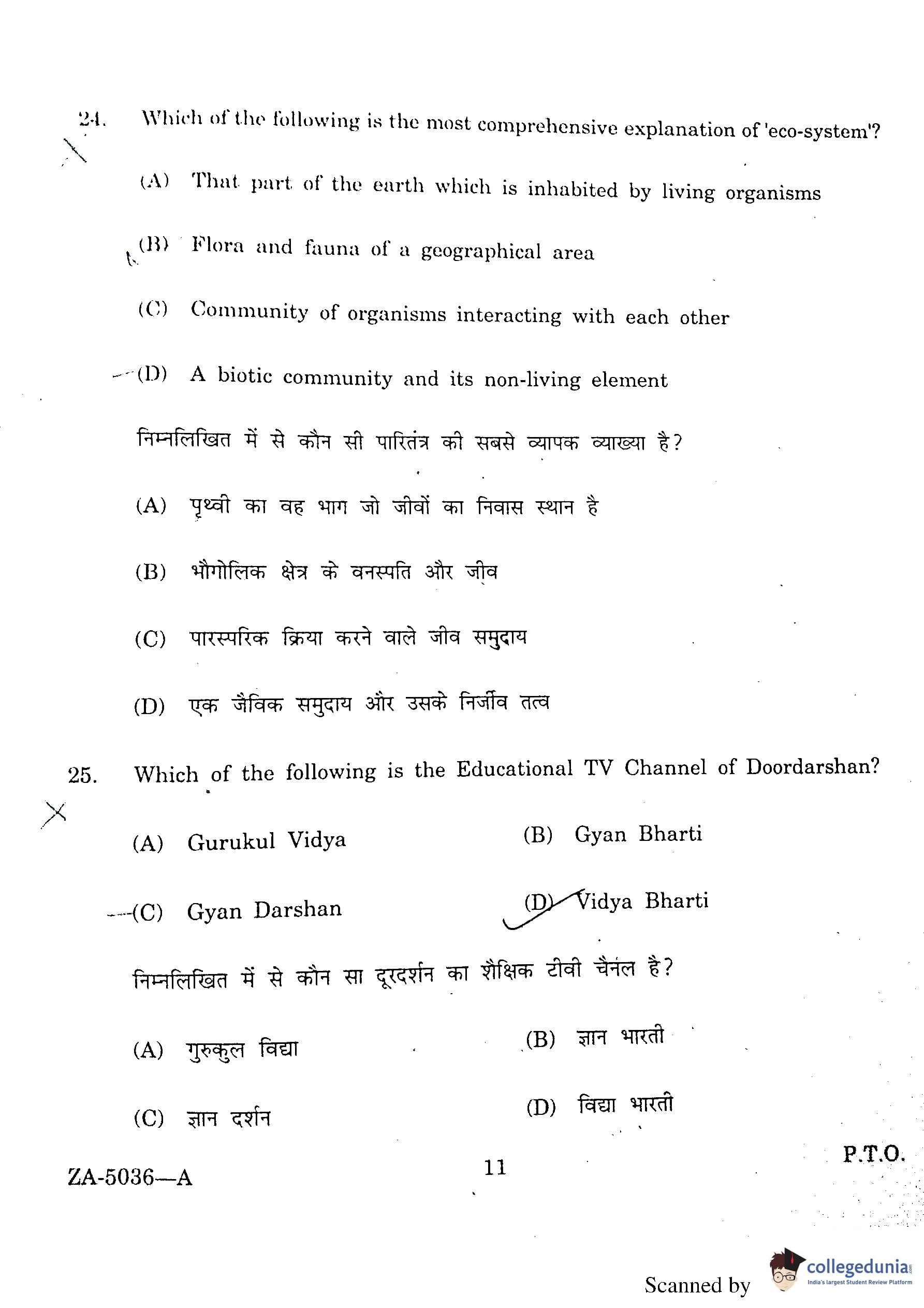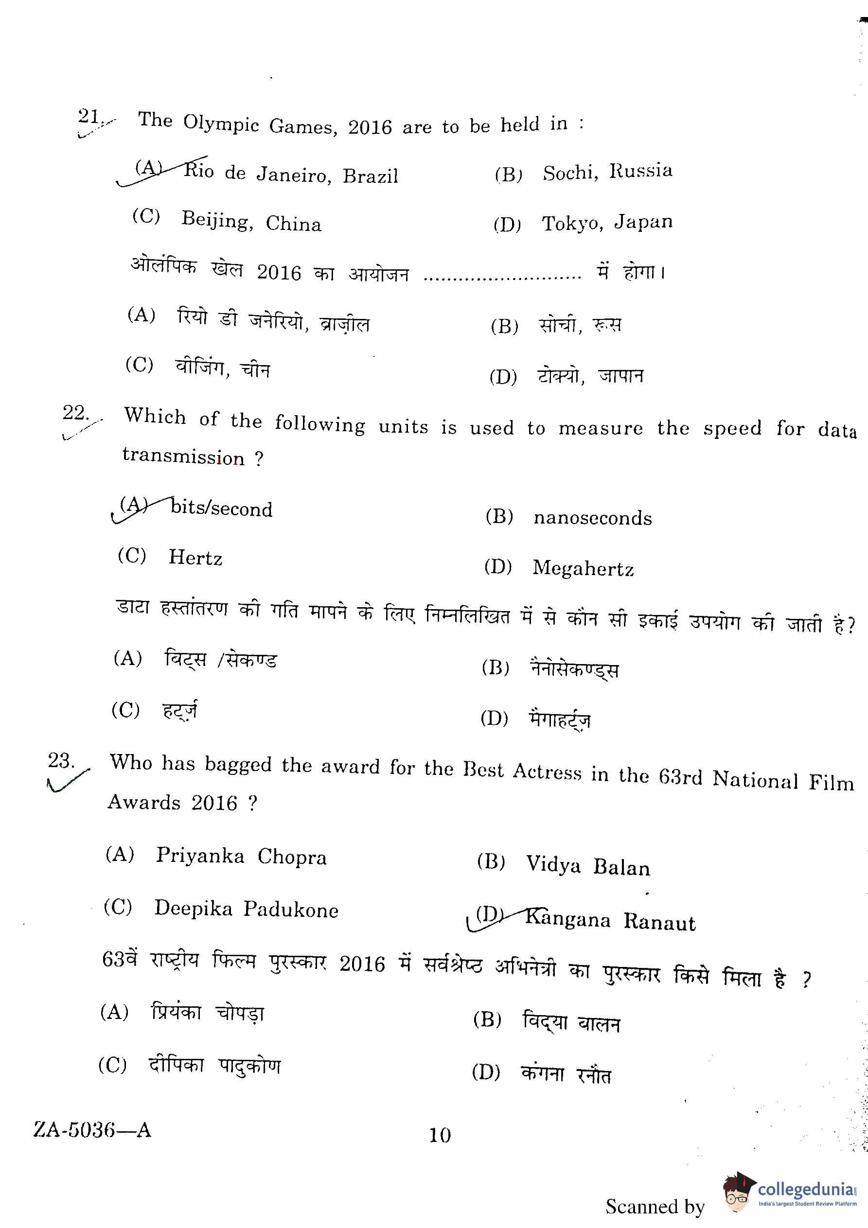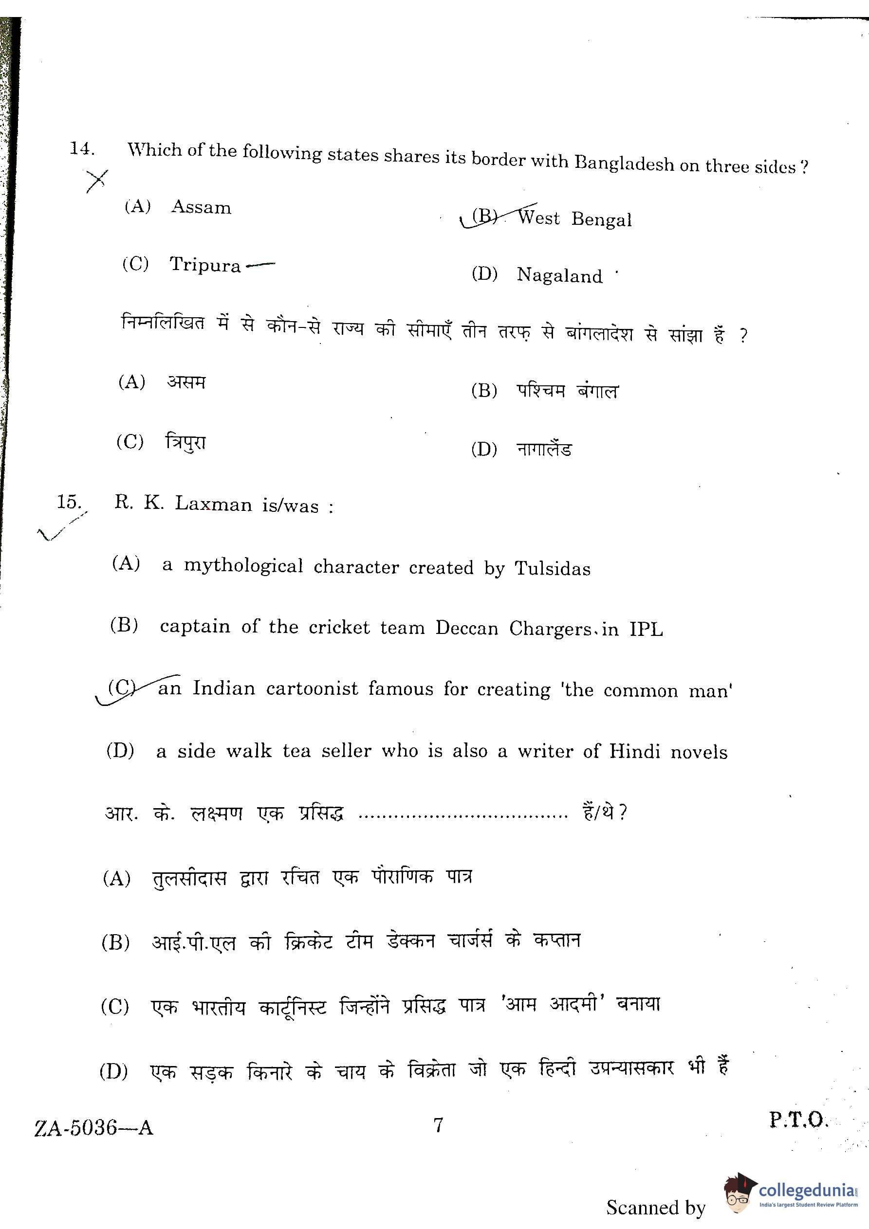 DU BEd Entrance Exam 2016 Question Paper with Answer Key PDFs