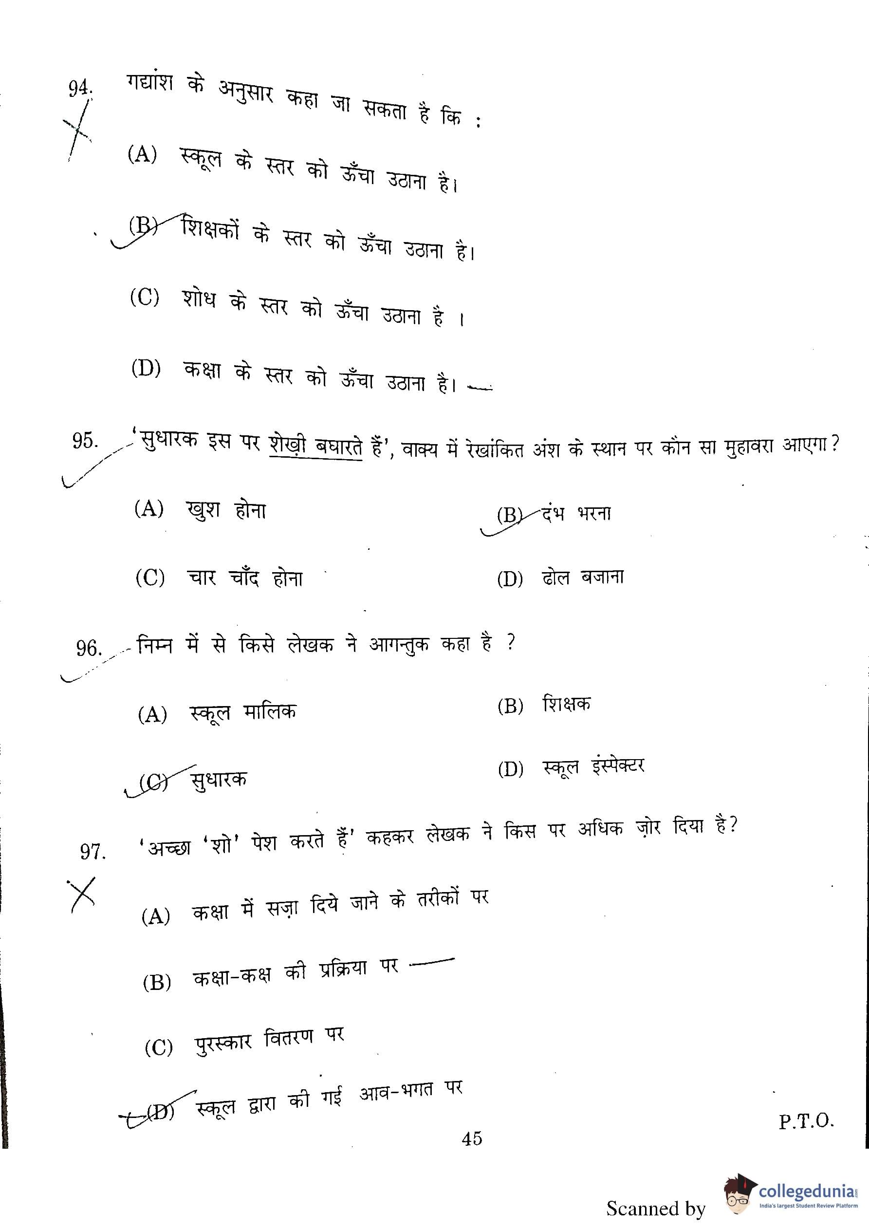 DU BEd Entrance Exam 2016 Question paper with answer key pdf is available for download. The exam was successfully organized by Delhi University. The question paper comprised a total of 100 questions.