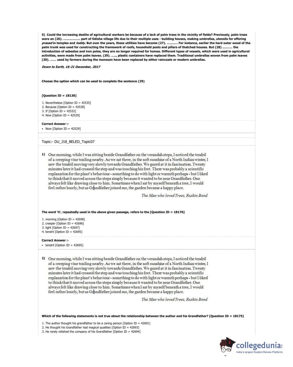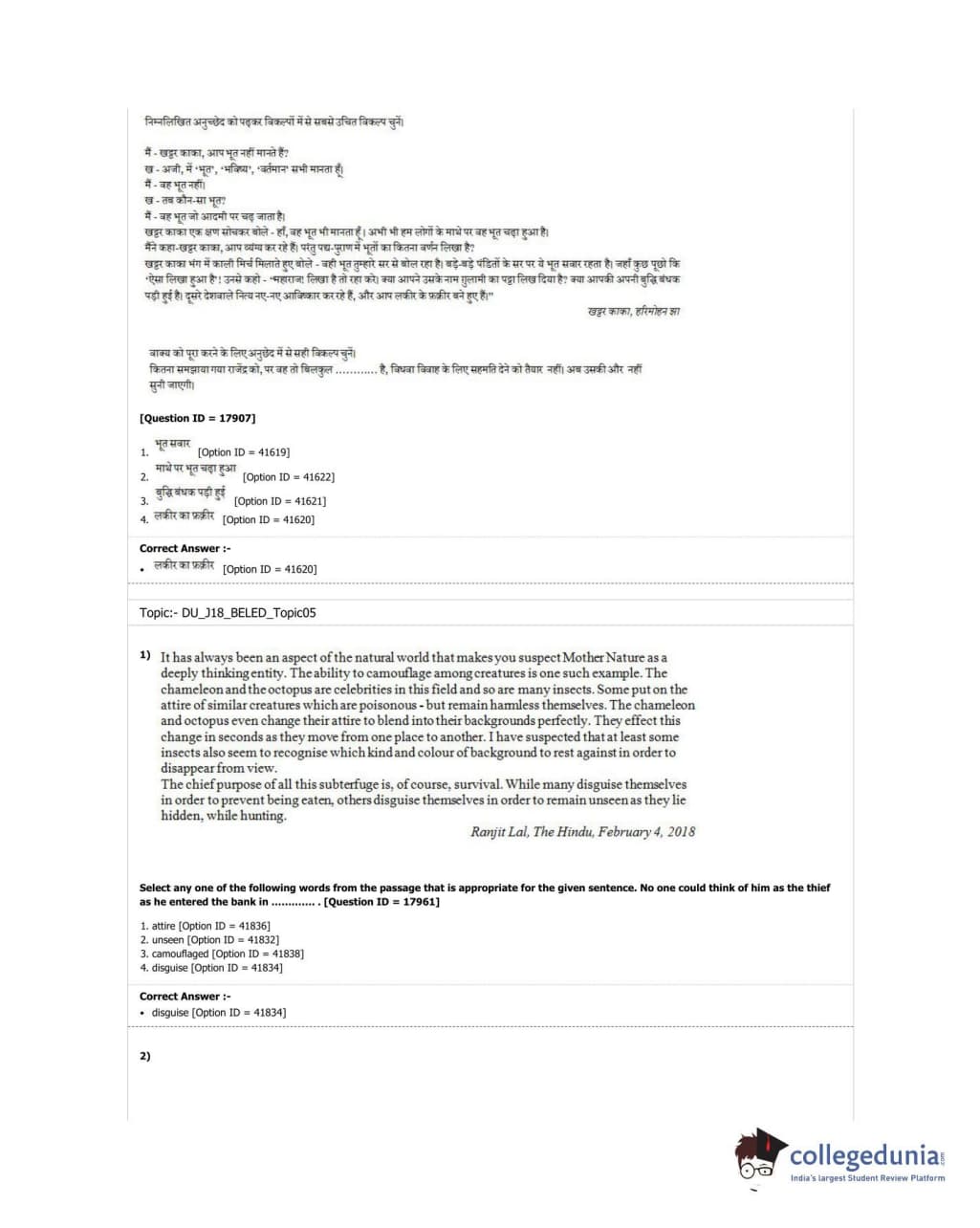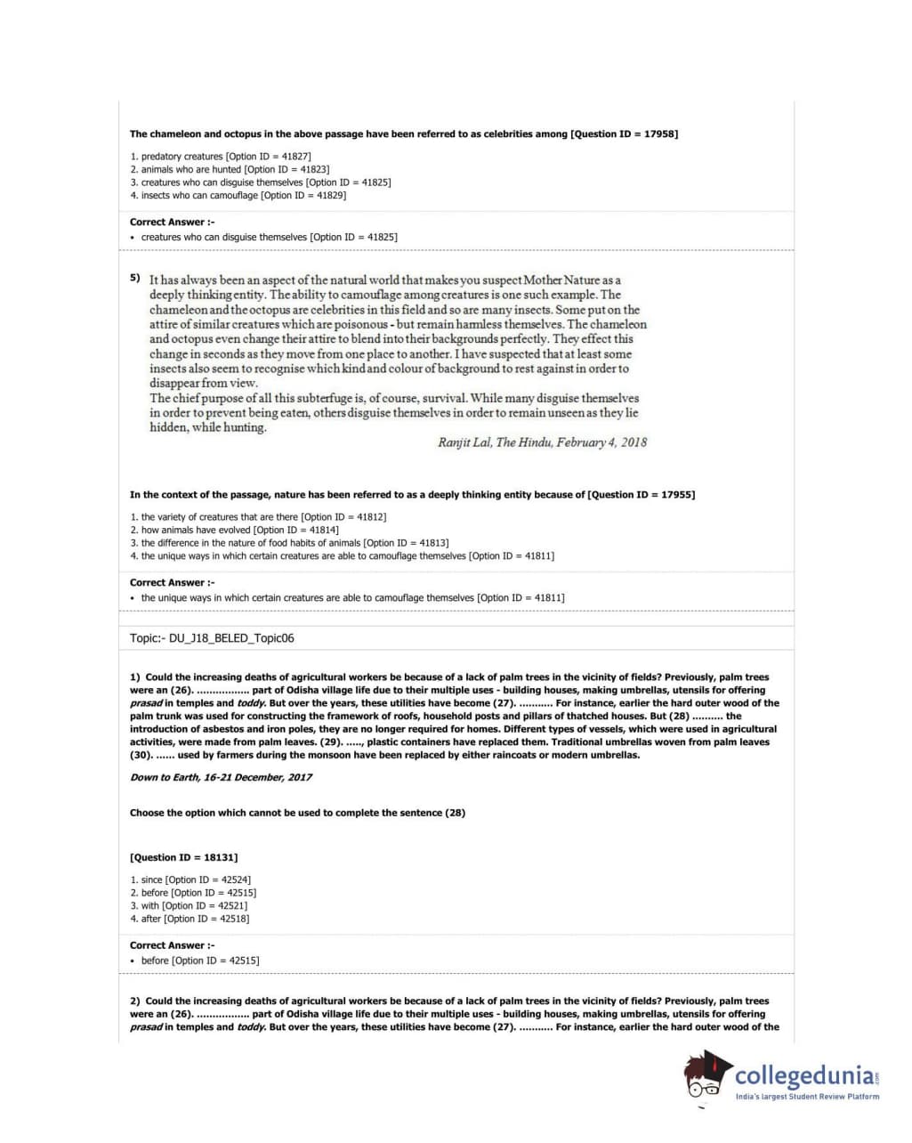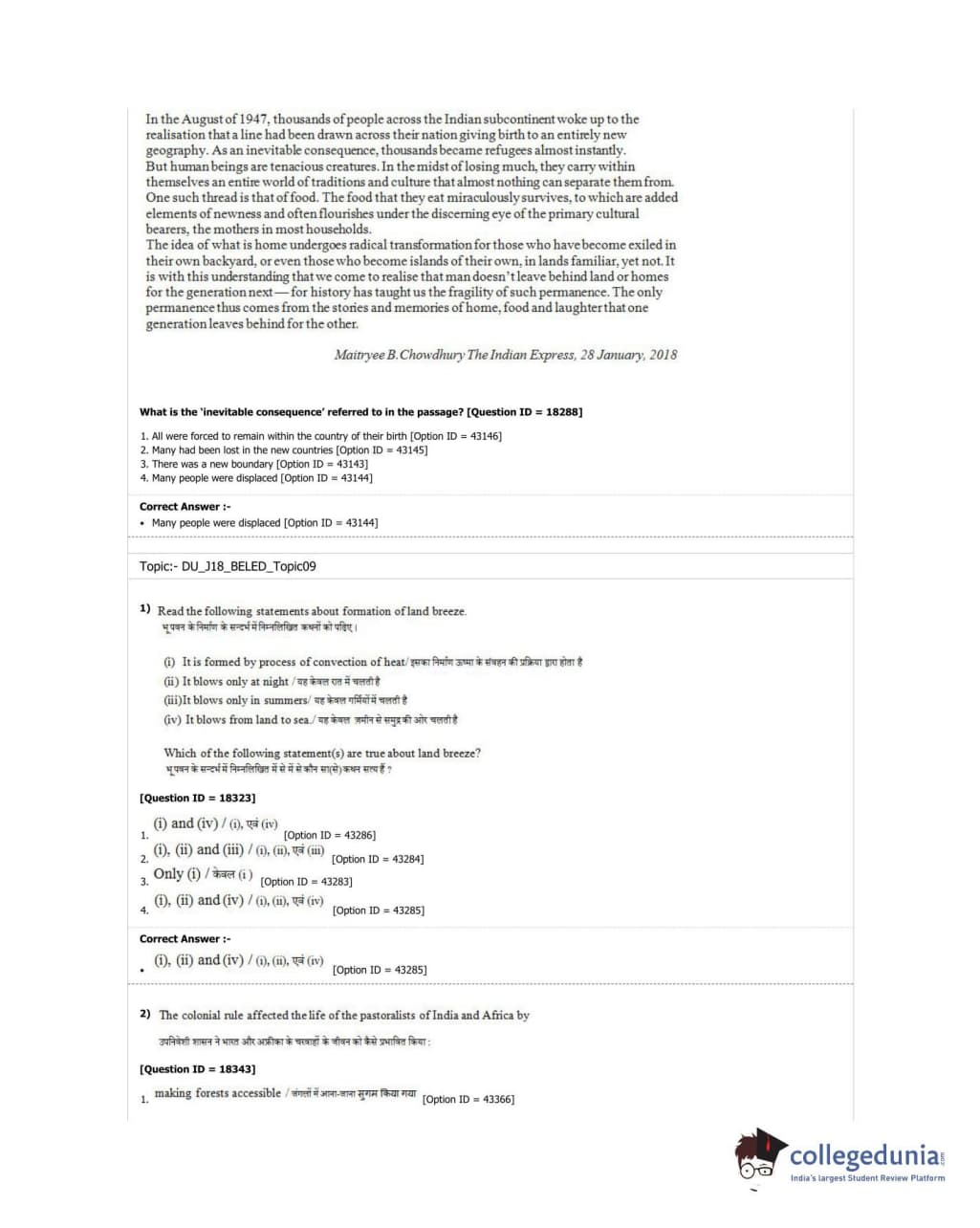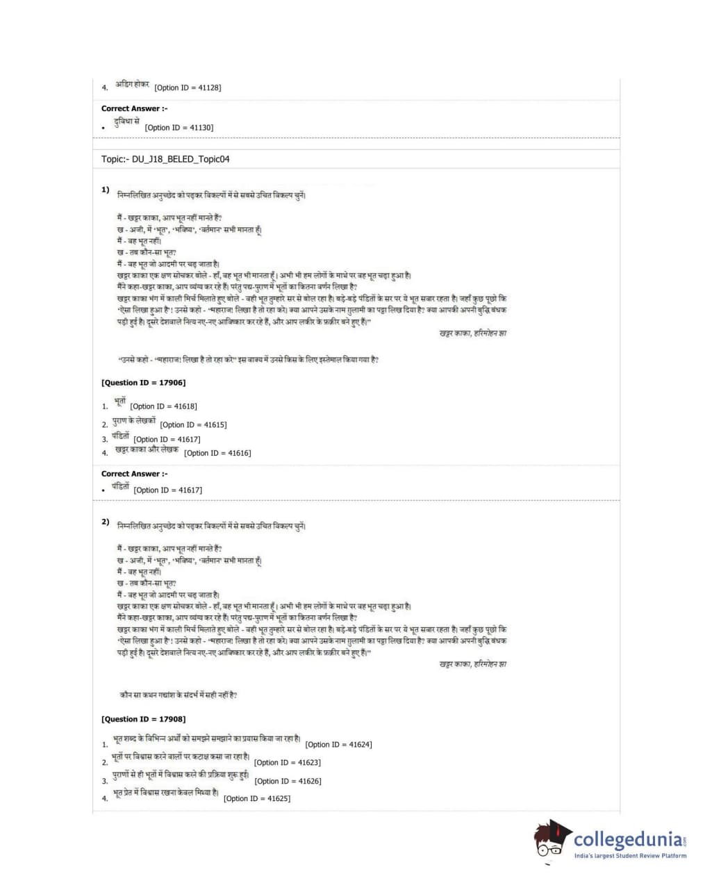 DU B.Ed Entrance Exam 2018 B.El.Ed. Question Paper with Answer Key PDFs Shift 2