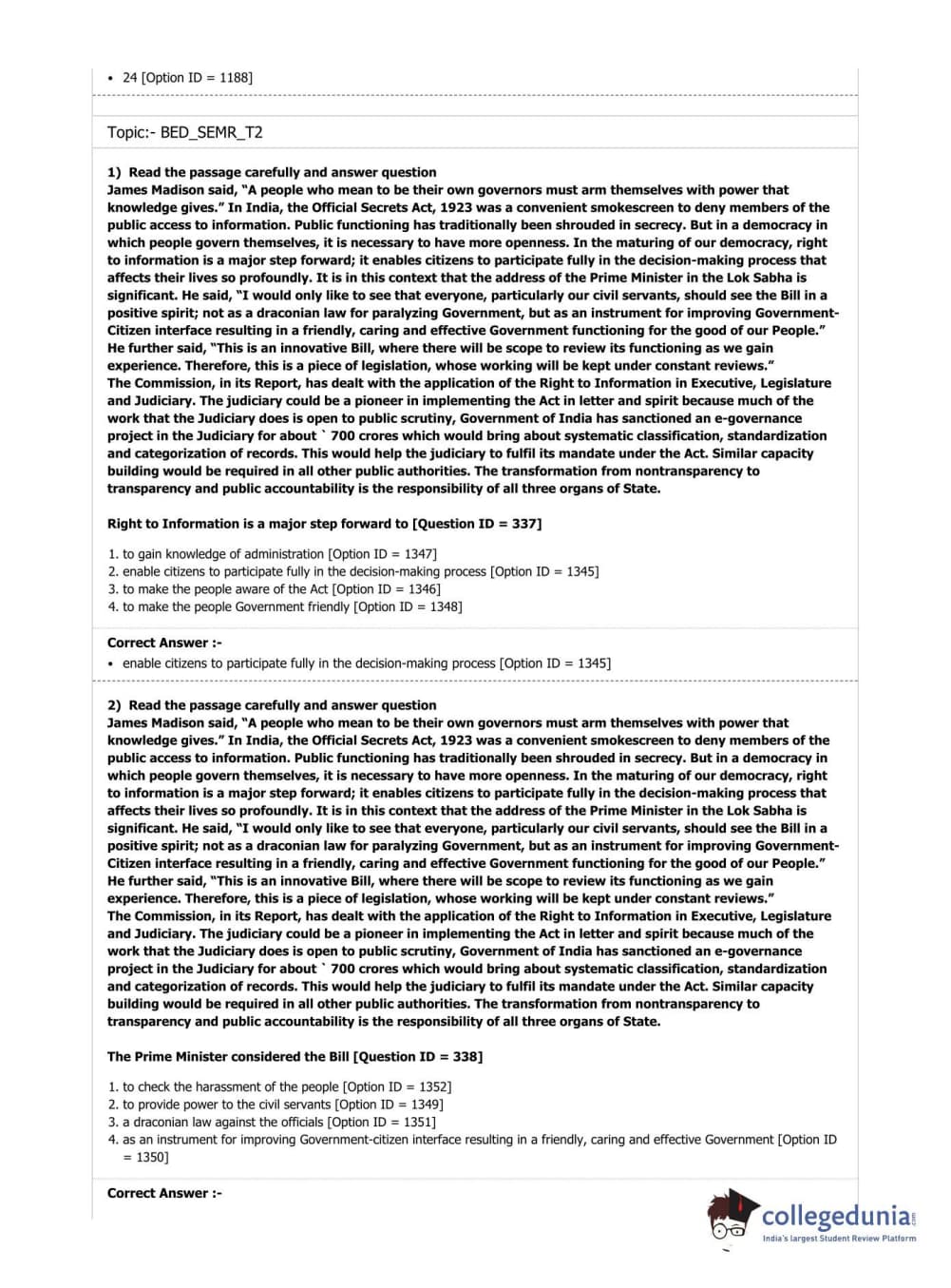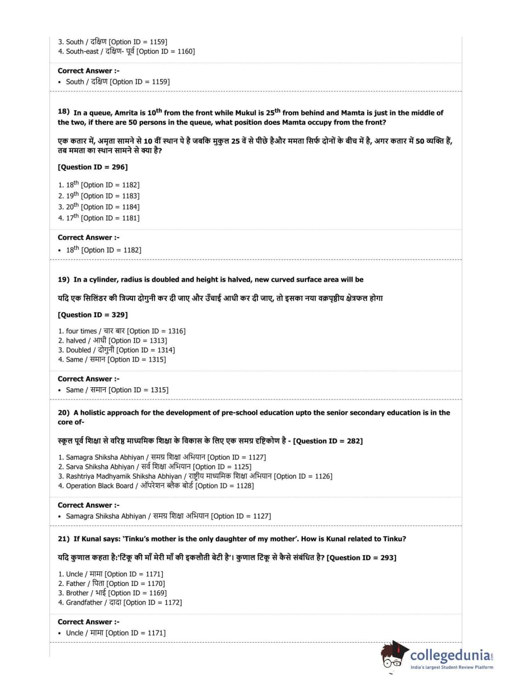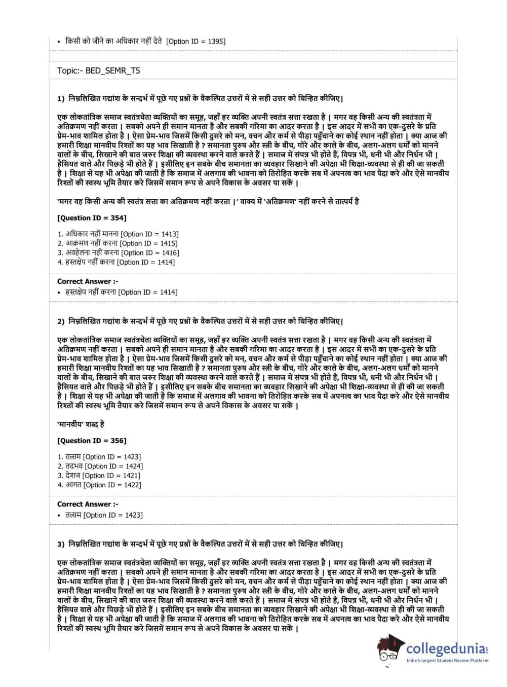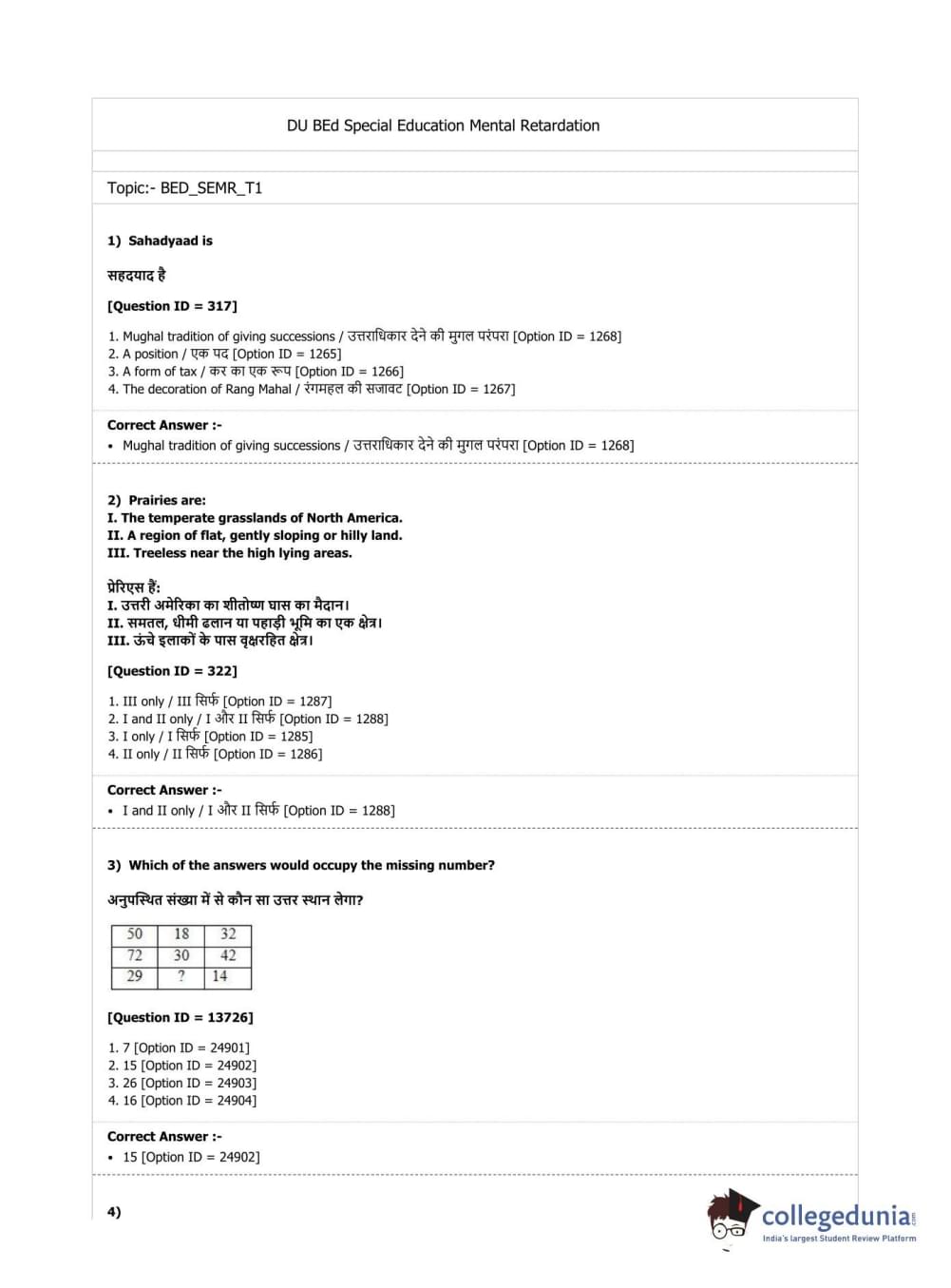 | DU B.Ed Entrance Exam 2019 B.Ed. Special Education (Mental Retardation) Question Paper PDF | DU B.Ed Entrance Exam 2019 B.Ed. Special Education (Mental Retardation) Answer Key PDF |