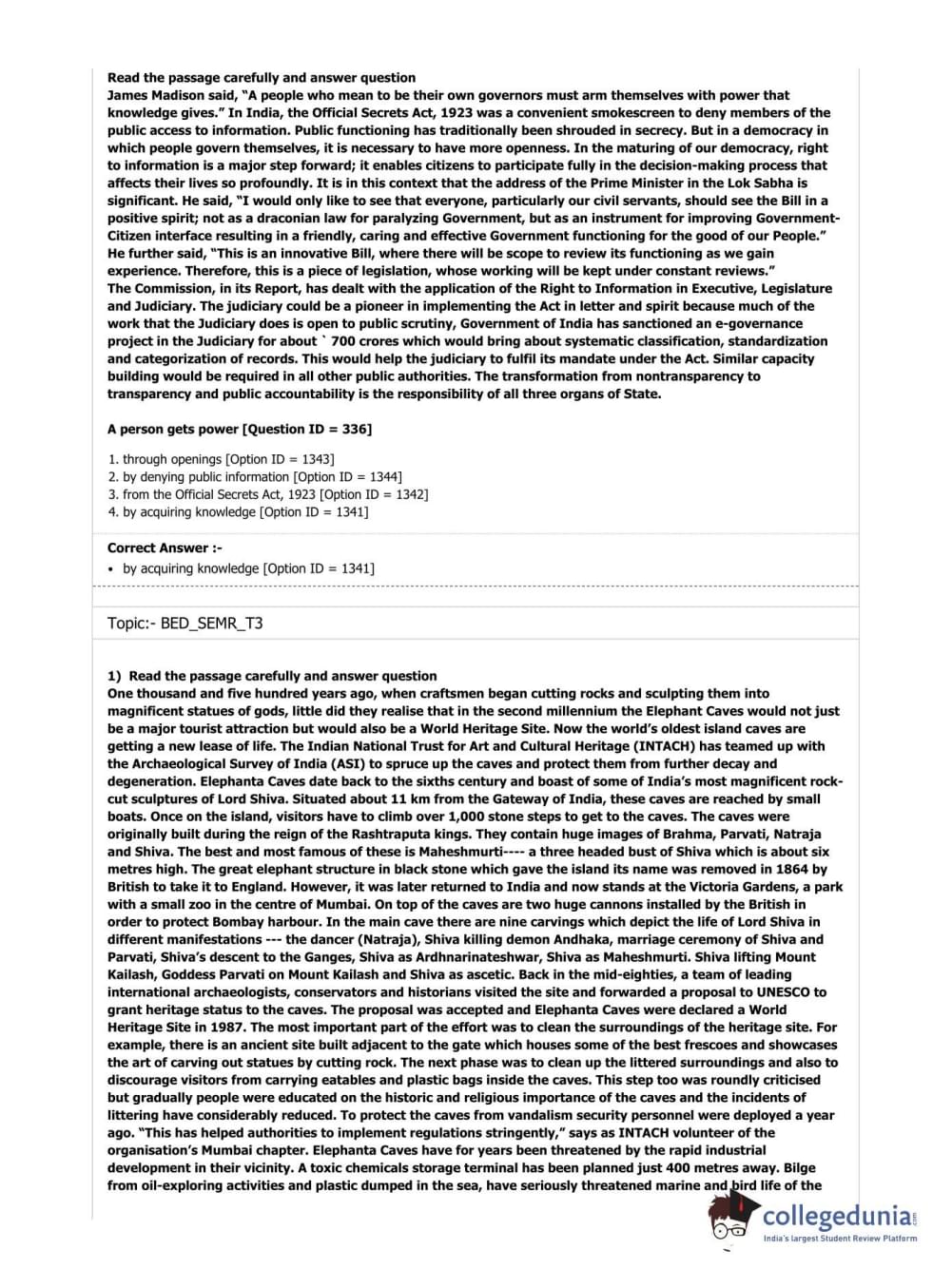 DU B.Ed Entrance Exam 2019 B.Ed. Special Education (Mental Retardation) Question Paper with Answer Key PDFs Shift 3