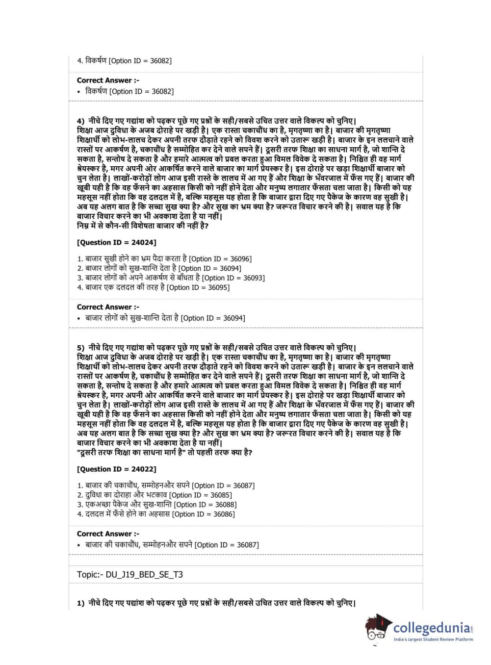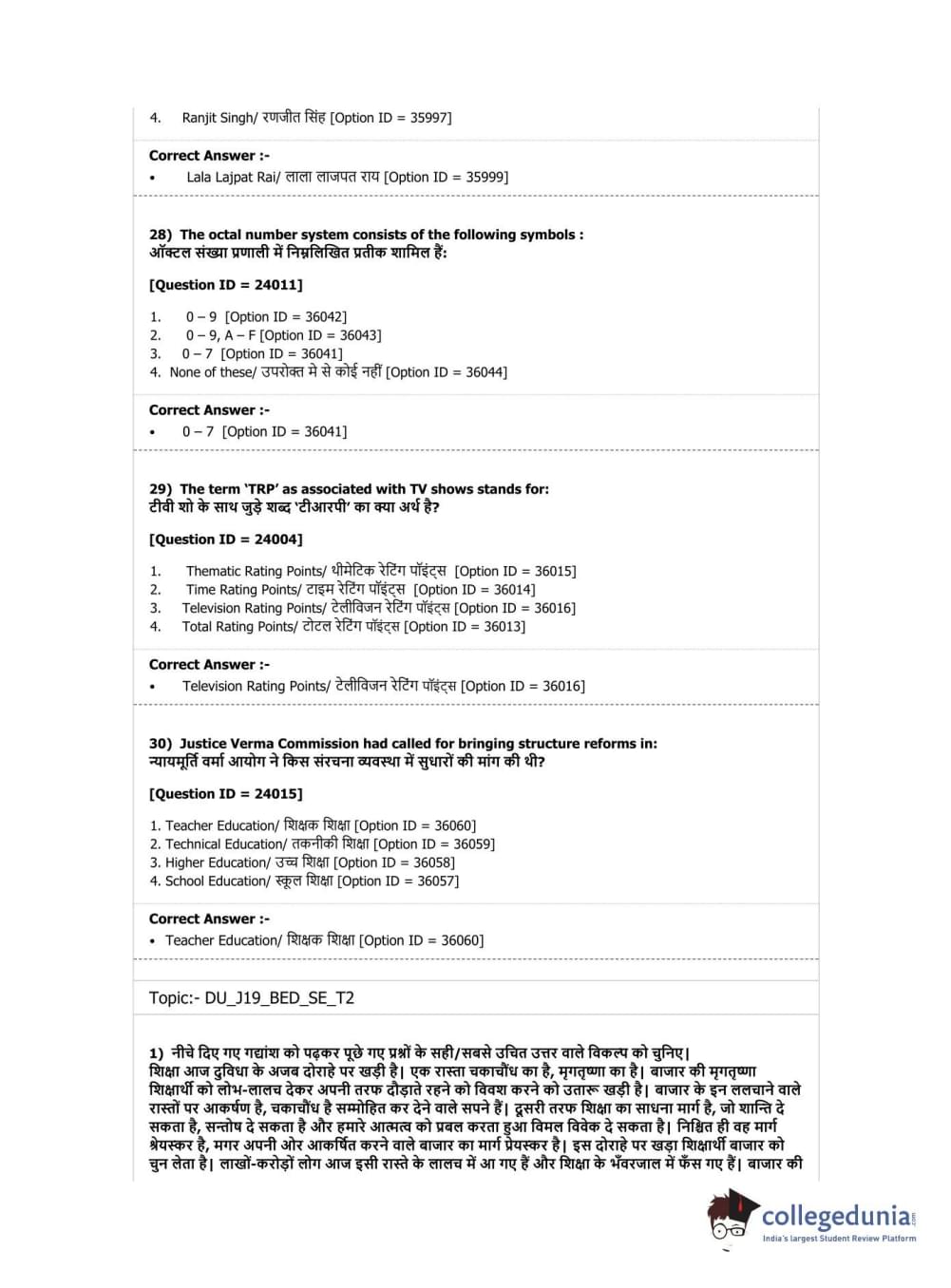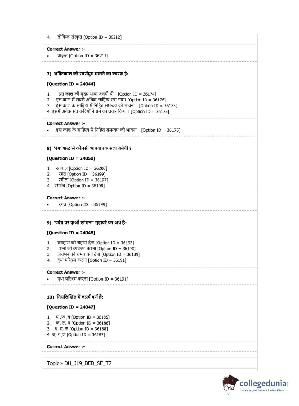 DU B.Ed Entrance Exam 2019 B.Ed. Special Education (Visual Impairment) Question paper with answer key pdf conducted on April 7, 2019 in Shift 3 is available for download. The exam was successfully organized by National Testing Agency (NTA). The question paper comprised a total of 100 questions.