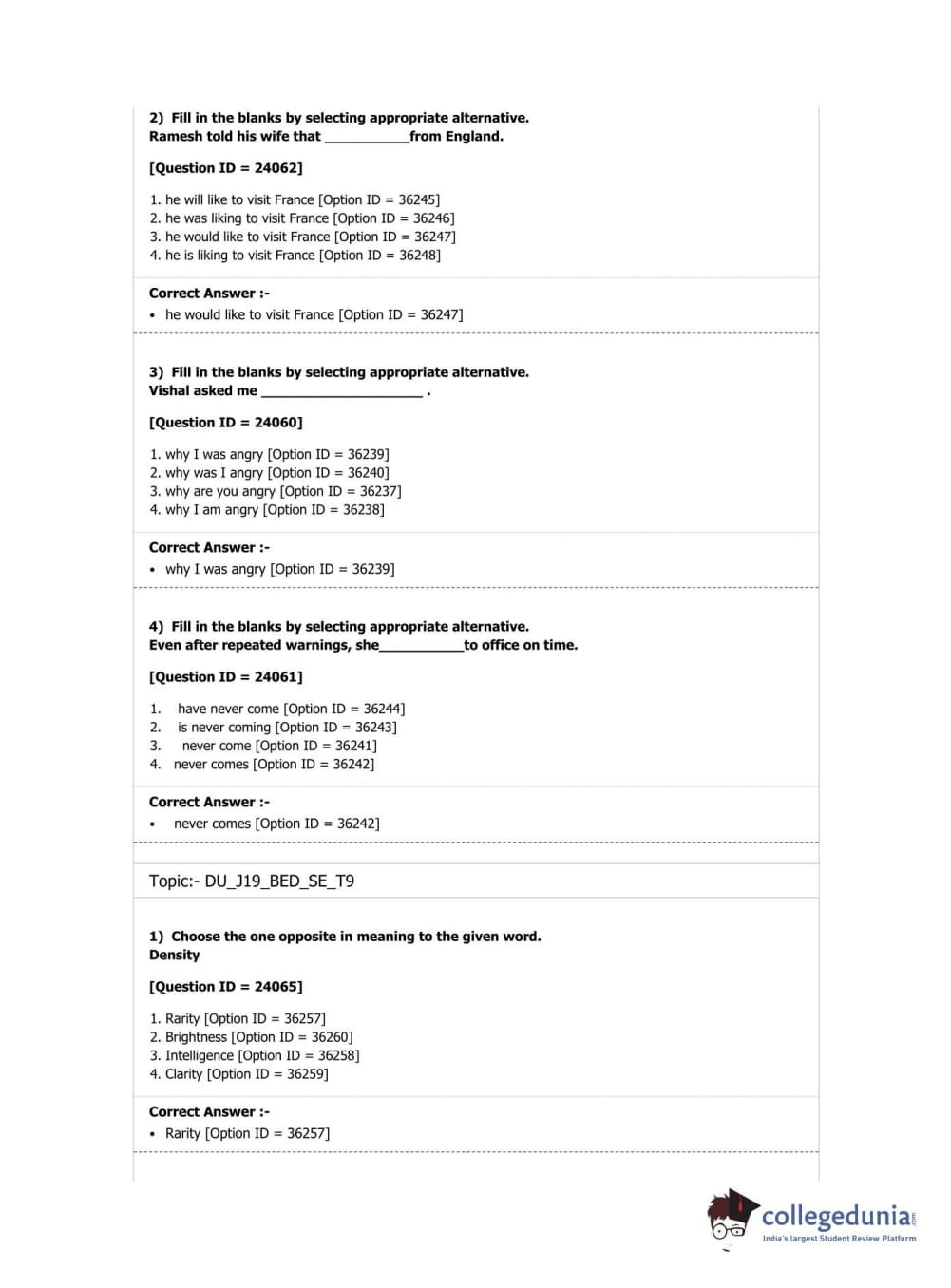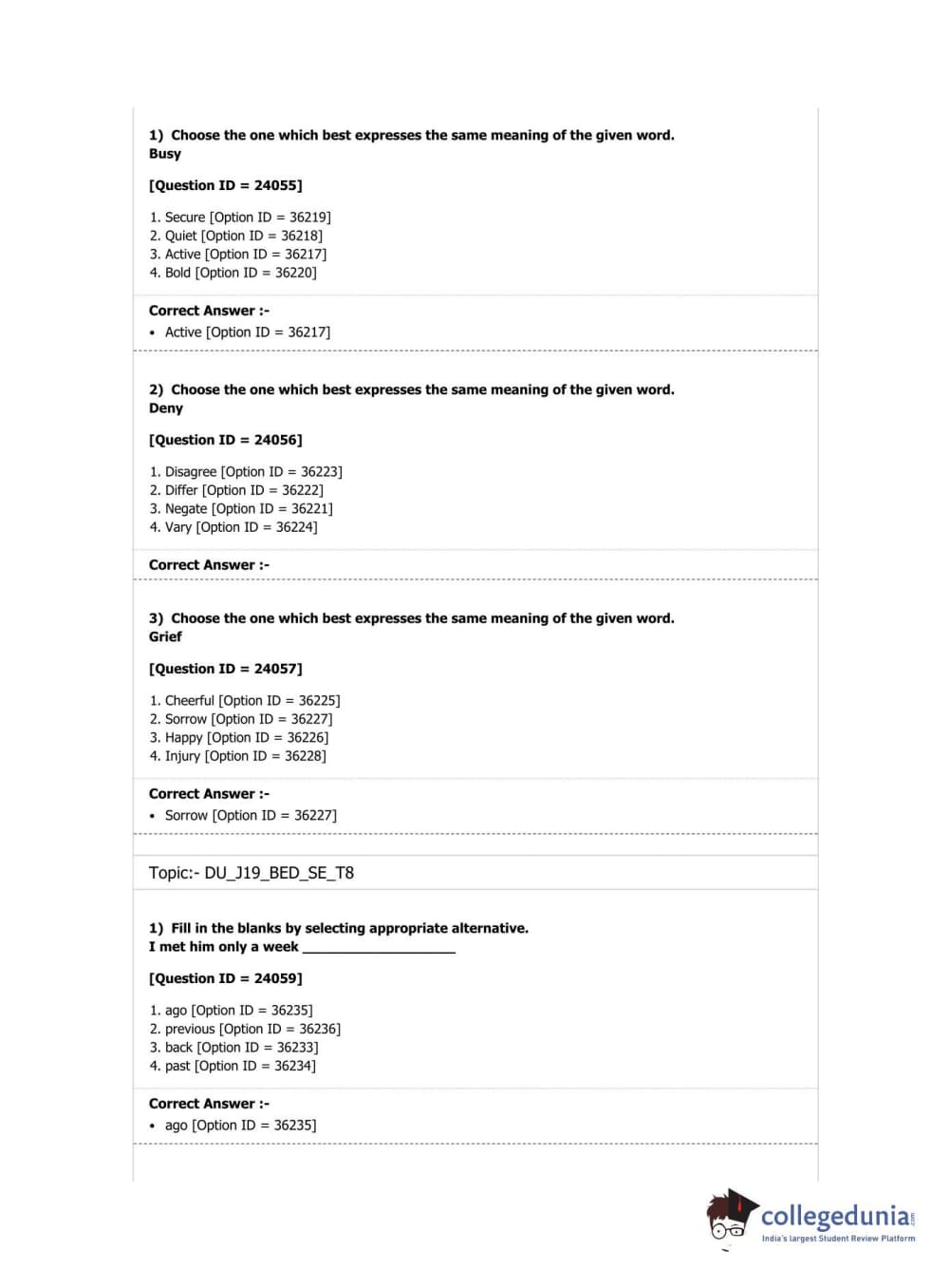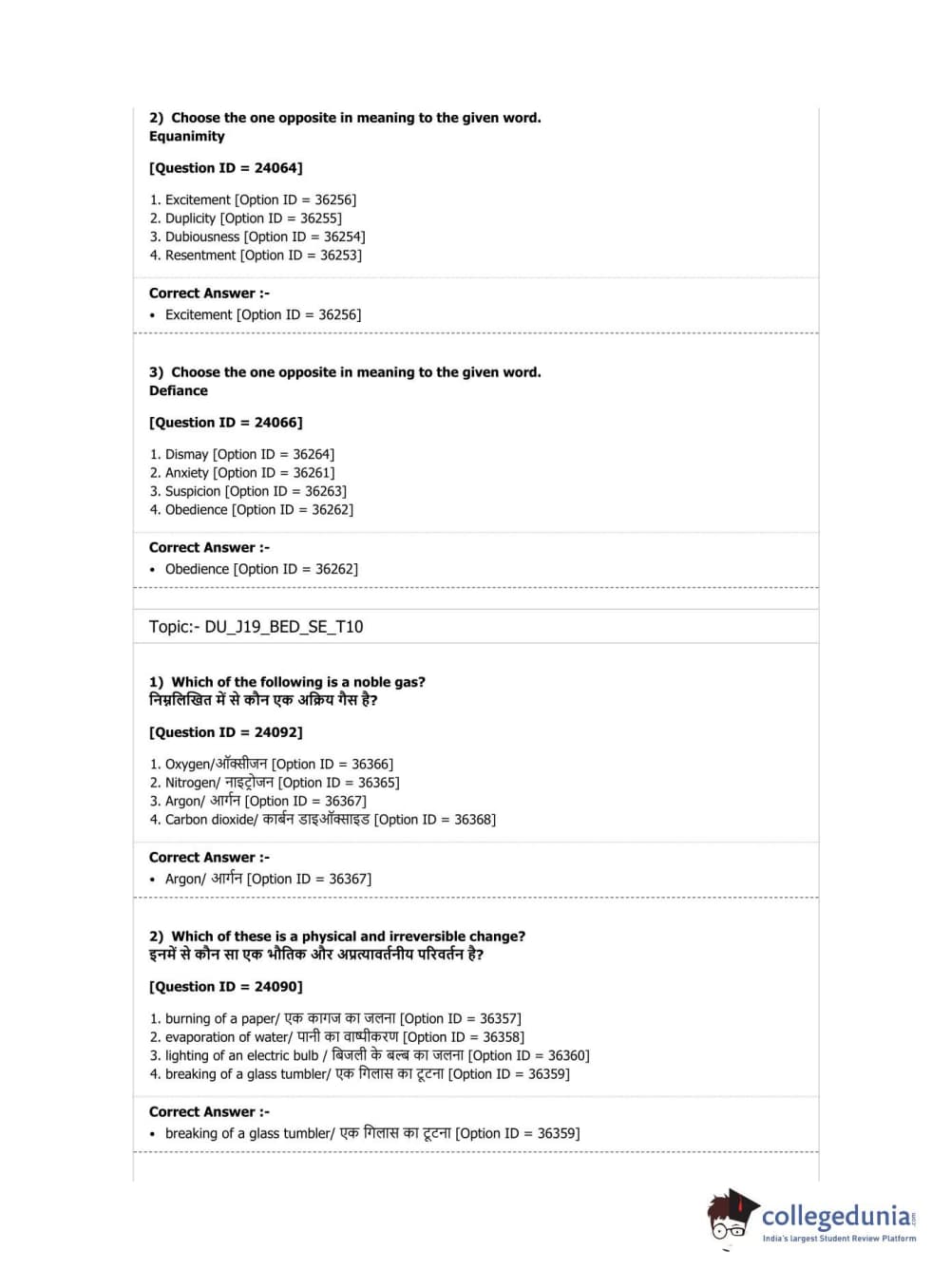 DU B.Ed Entrance Exam 2019 B.Ed. Special Education (Visual Impairment) Question paper with answer key pdf conducted on April 7, 2019 in Shift 3 is available for download. The exam was successfully organized by National Testing Agency (NTA). The question paper comprised a total of 100 questions.