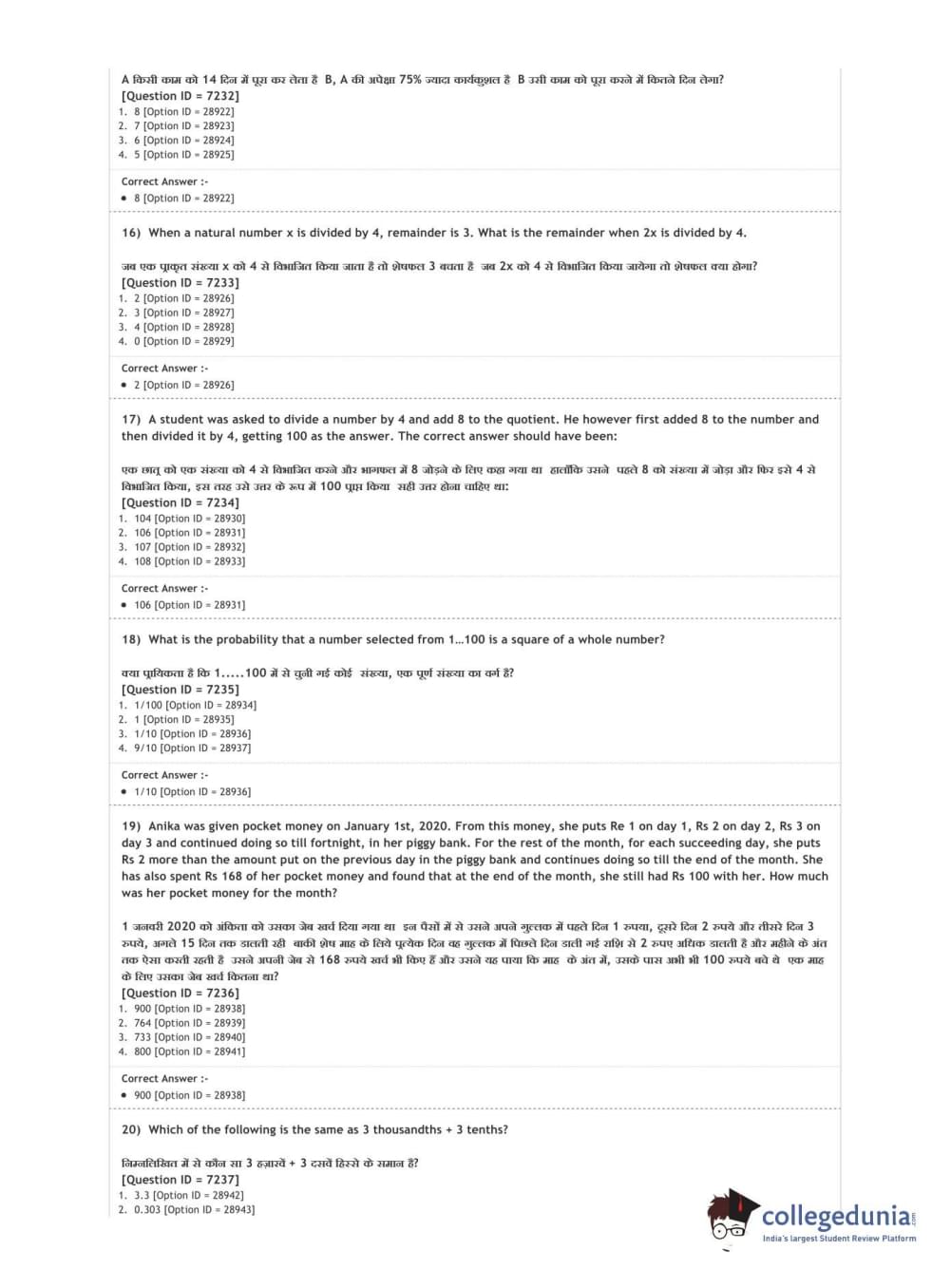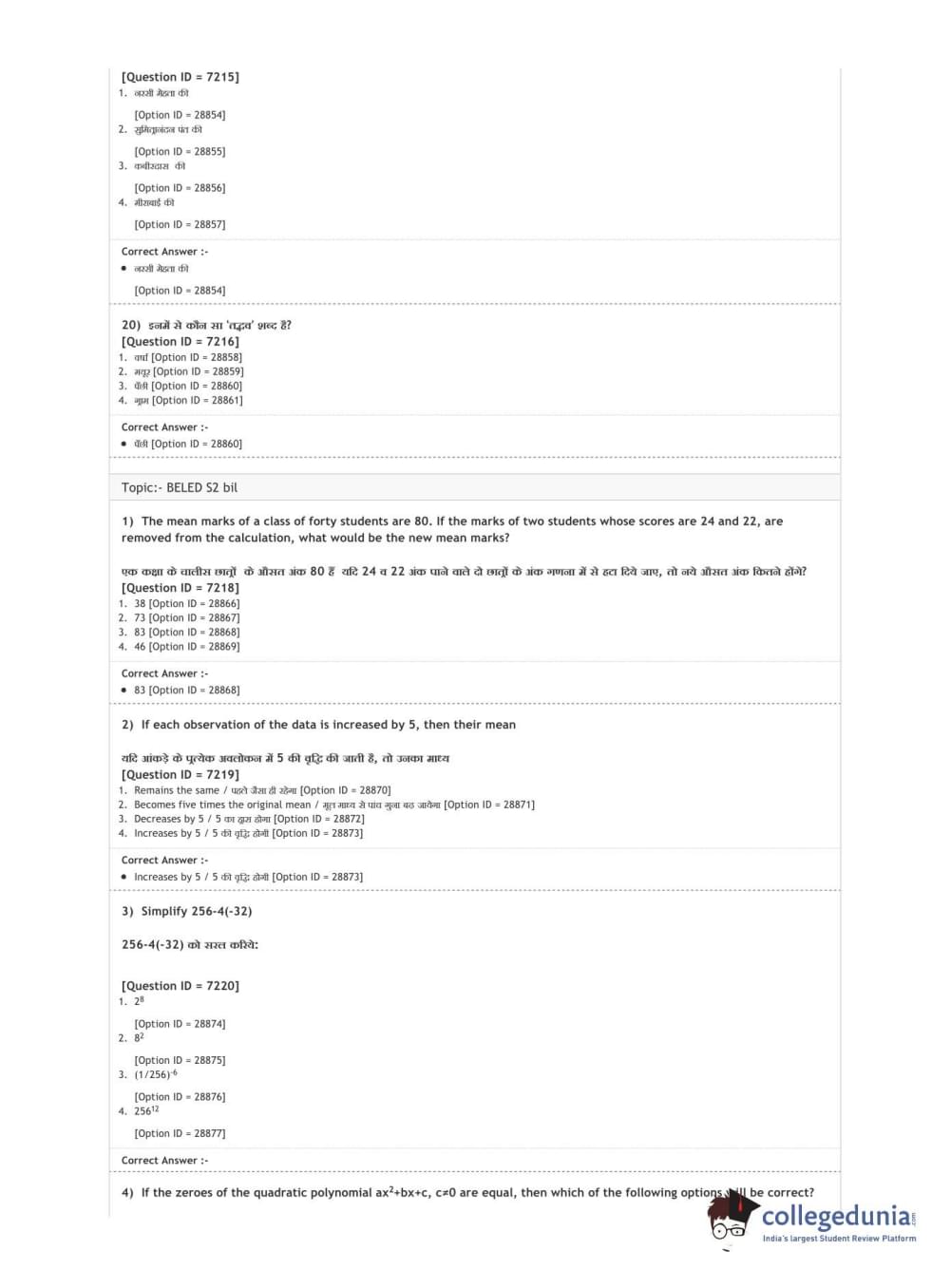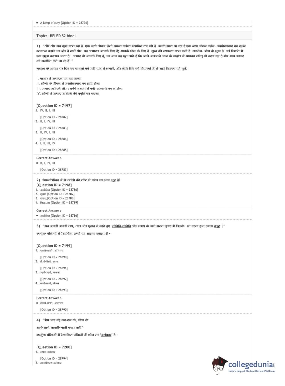 DU B.Ed Entrance Exam 2020 B.El.Ed. Question Paper with Answer Key PDFs Shift 2