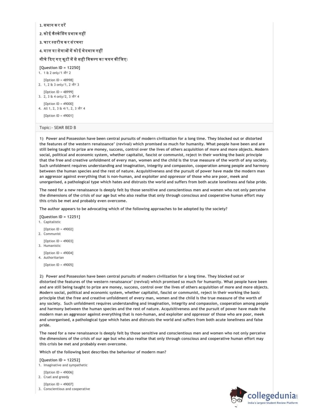 DU B.Ed Entrance Exam 2021 DU BEd Special Education Mental Retardation Question paper with answer key pdf conducted on September 27, 2021 in Shift 1 is available for download. The exam was successfully organized by National Testing Agency (NTA). The question paper comprised a total of 100 questions.