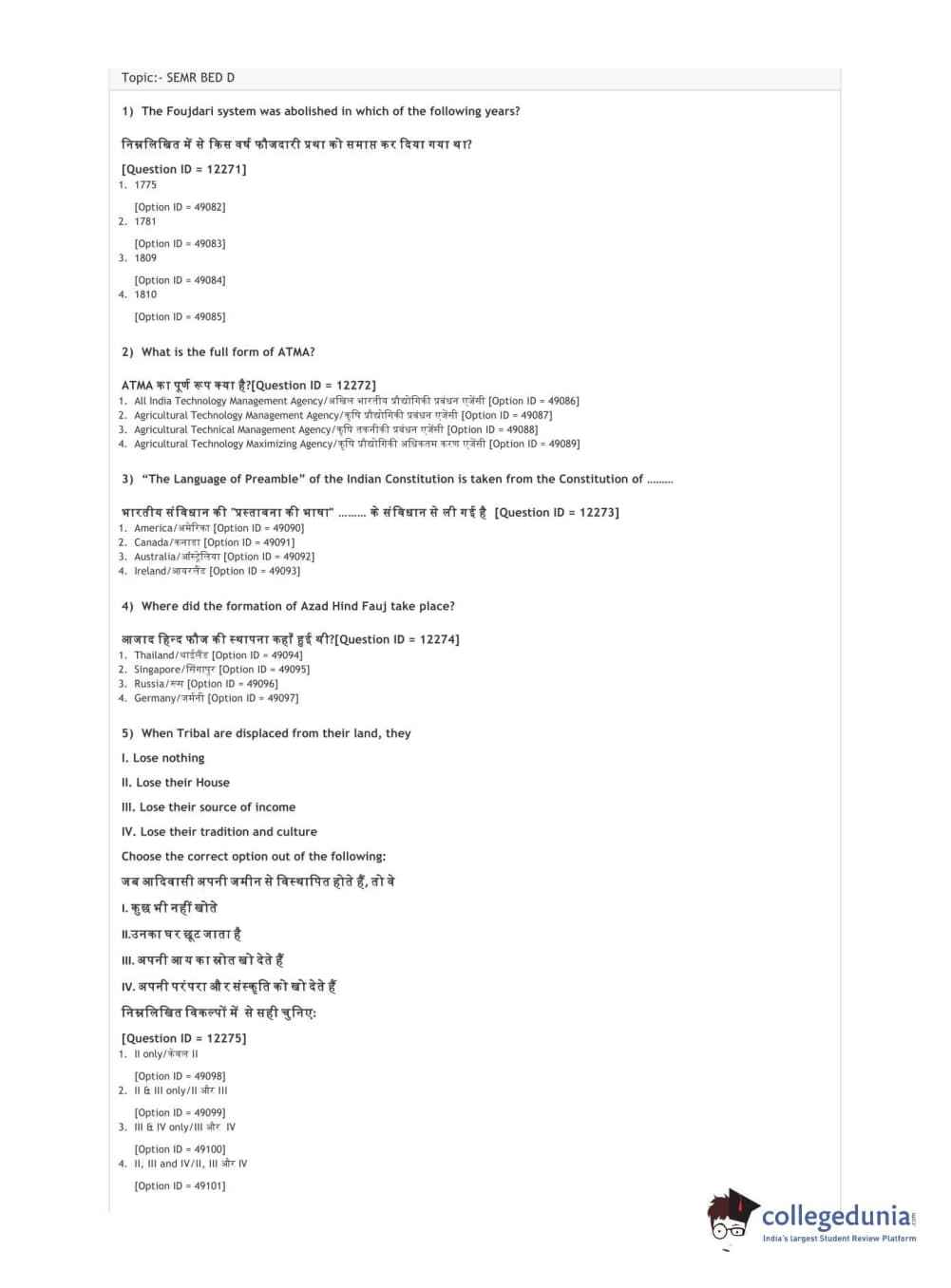 | DU B.Ed Entrance Exam 2021 DU BEd Special Education Mental Retardation Question Paper PDF | DU B.Ed Entrance Exam 2021 DU BEd Special Education Mental Retardation Answer Key PDF |