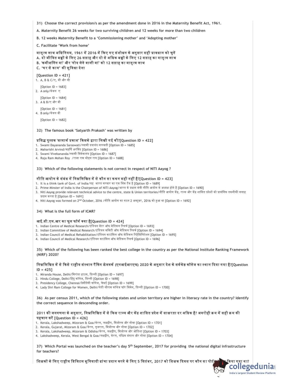 DU B.Ed Entrance Exam 2021 B.Ed. Special Education (Visual Impairment) Question Paper with Answer Key PDF Shift 1