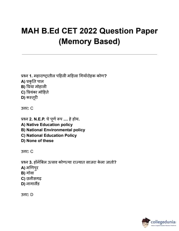 MAH B.Ed CET 2022 Question Paper with Solutions