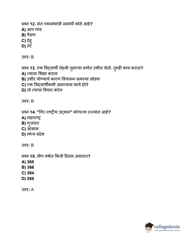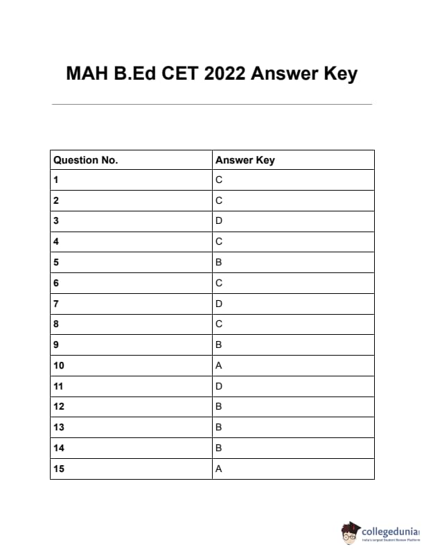 | MAH B.Ed CET 2022 Question Paper with Solutions | Check Solution |
