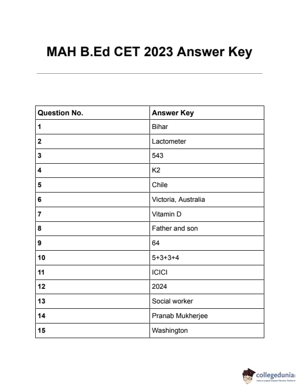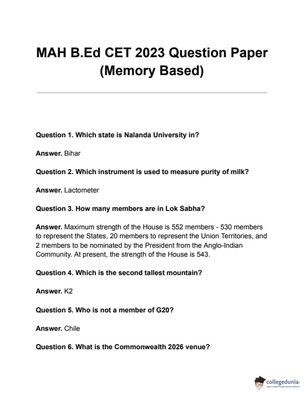| MAH B.Ed CET 2023 Question Paper with Solutions | Check Solution |