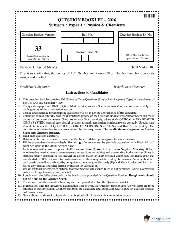 IMU CET 2016 Question paper with answer key PDFs is available for download. The exam was successfully organized by Indian Maritime University. The question paper comprised a total of 100 questions.