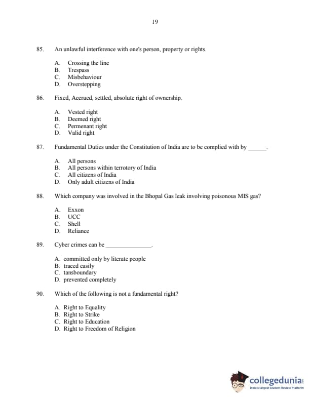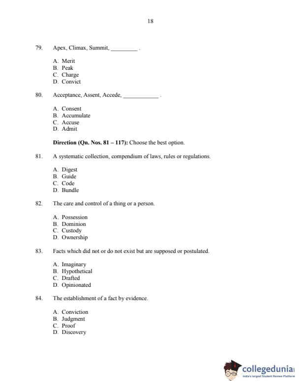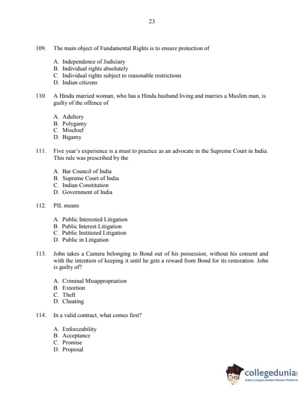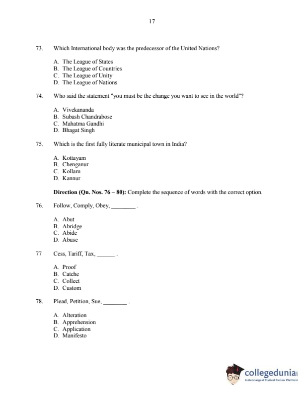 CUSAT CAT 2016 3 year LLB Question paper with answer key pdf is available for download. The exam was successfully organized by Cochin University of Science & Technology. The question paper comprised a total of 150 questions.
