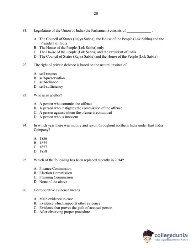 | CUSAT CAT 2016 3 year LLB Question Paper PDF | CUSAT CAT 2016 3 year LLB Answer Key PDF |