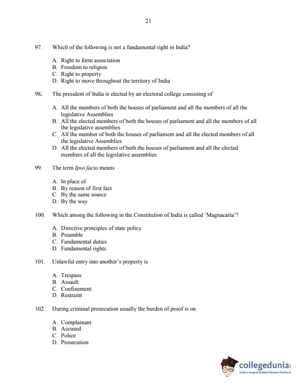 CUSAT CAT 2016 3 year LLB Question Paper with Answer Key PDFs