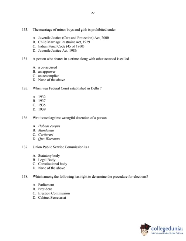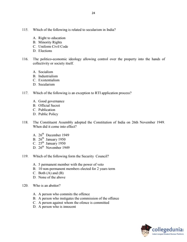 | CUSAT CAT 2016 5 Year LLB Question Paper PDF | CUSAT CAT 2016 5 Year LLB Answer Key PDF |
