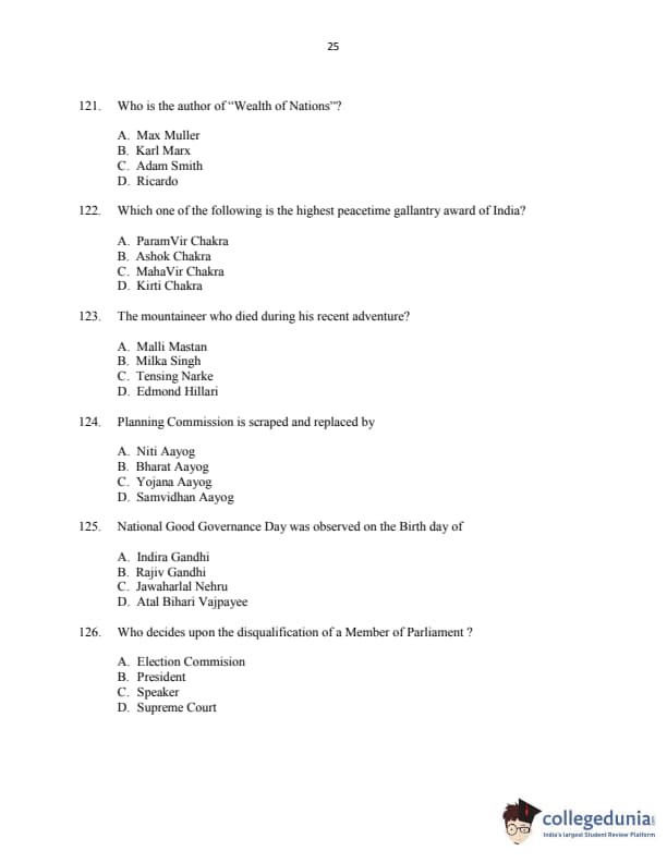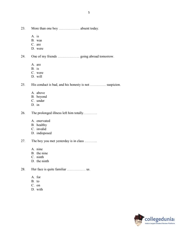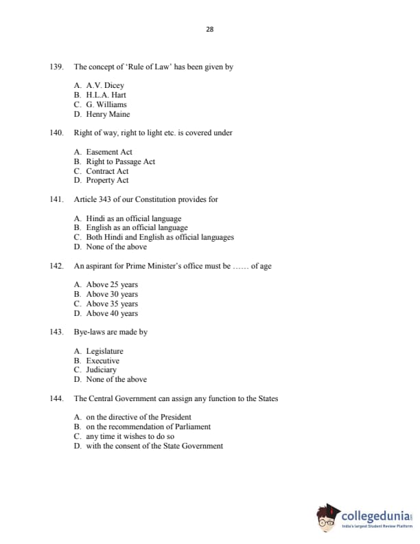 CUSAT CAT 2016 5 Year LLB Question Paper with Answer Key PDFs
