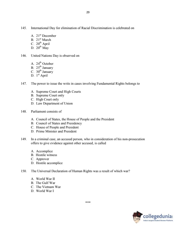 CUSAT CAT 2016 5 Year LLB Question paper with answer key pdf is available for download. The exam was successfully organized by Cochin University of Science & Technology. The question paper comprised a total of 150 questions.
