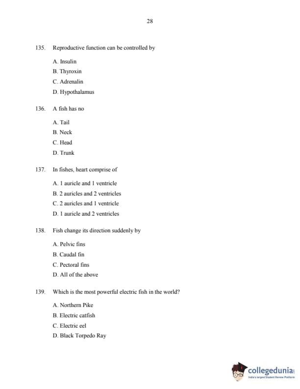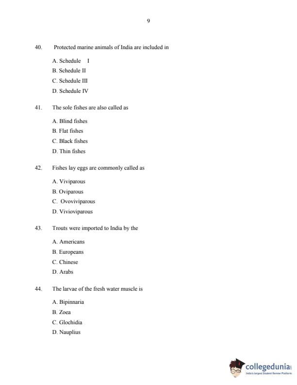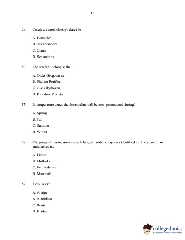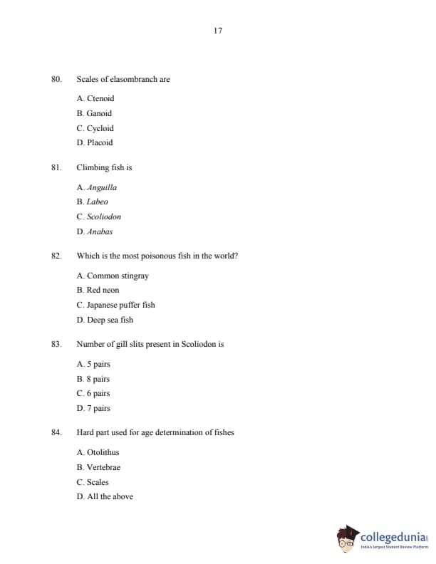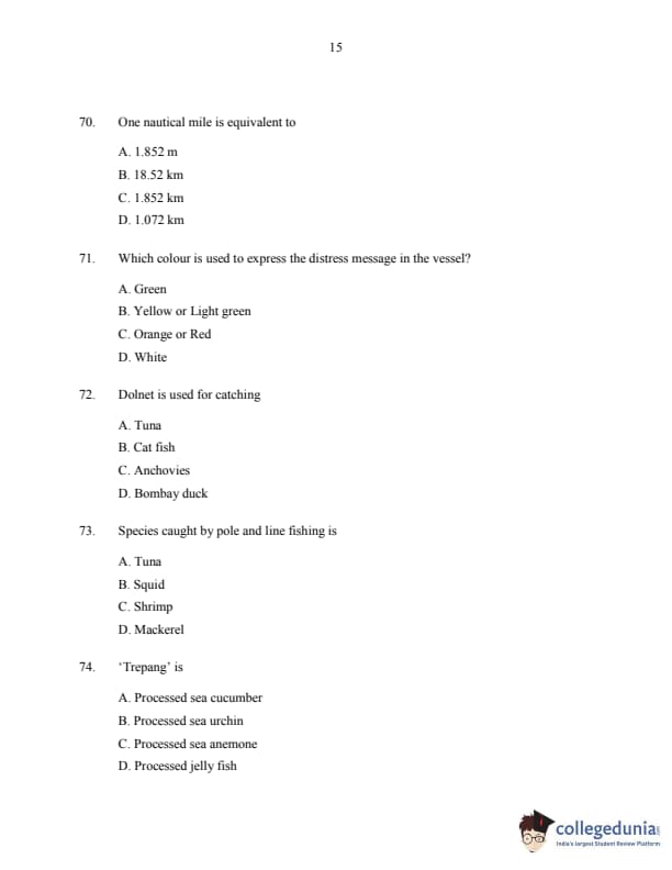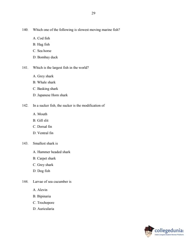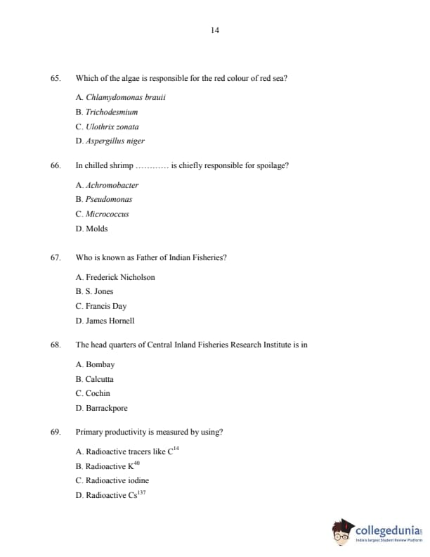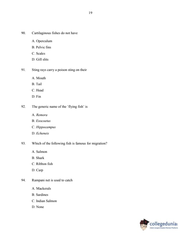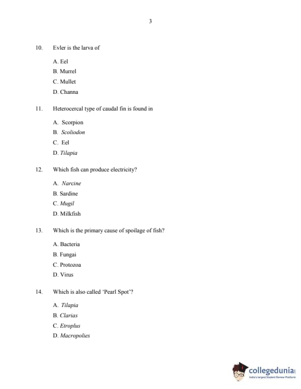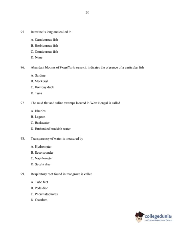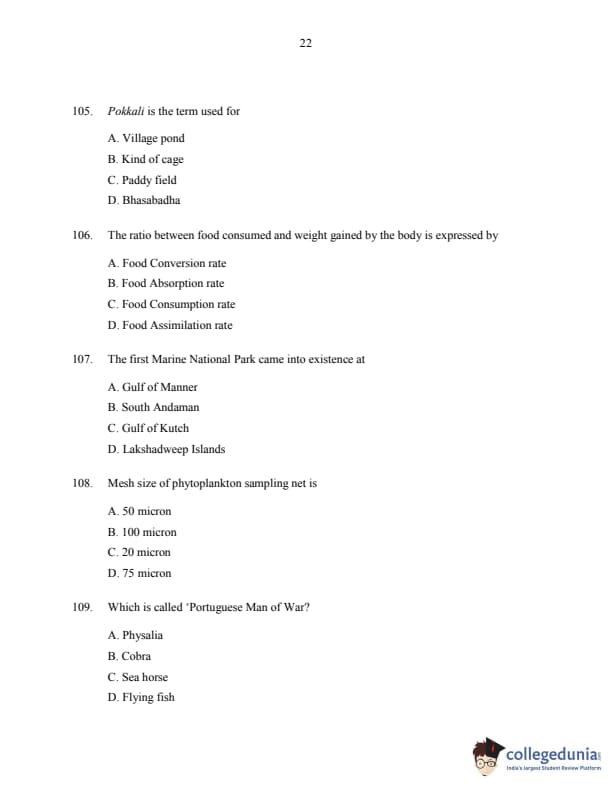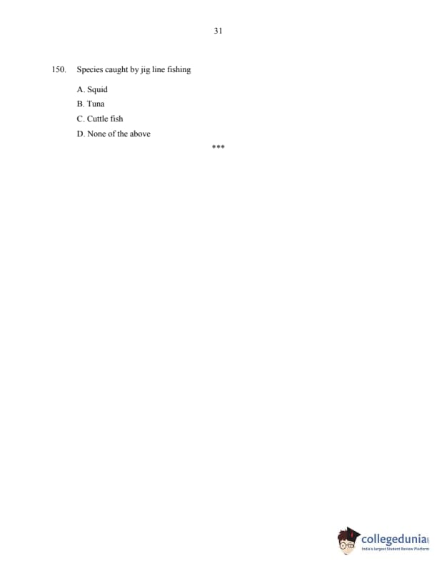 CUSAT CAT 2016 Fisheries Question paper with answer key pdf is available for download. The exam was successfully organized by Cochin University of Science & Technology. The question paper comprised a total of 150 questions.