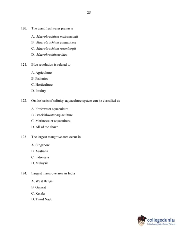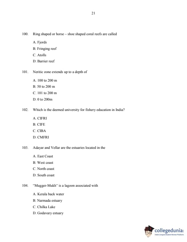 | CUSAT CAT 2016 Fisheries Question Paper PDF | CUSAT CAT 2016 Fisheries Answer Key PDF |