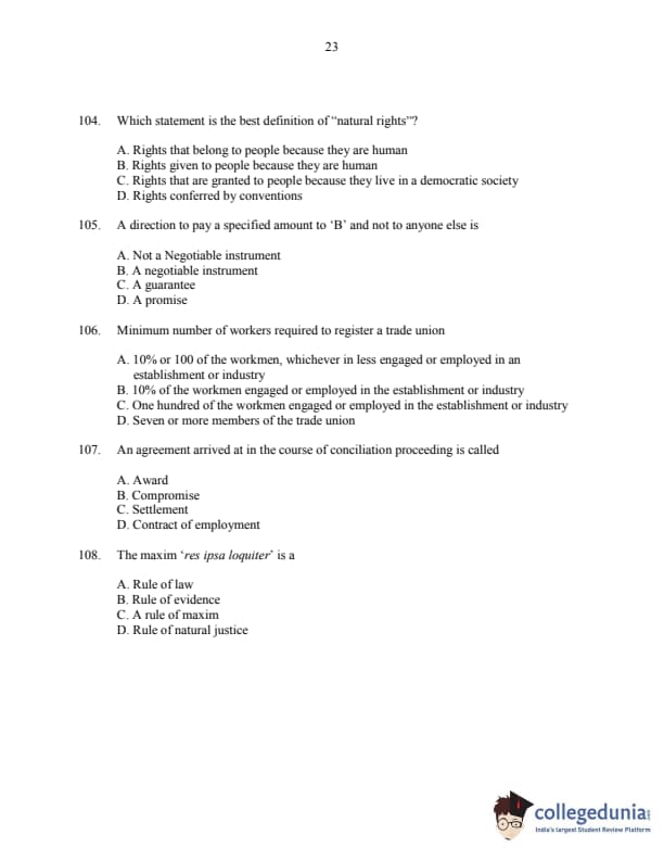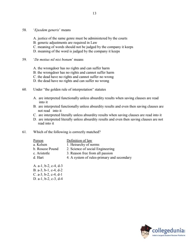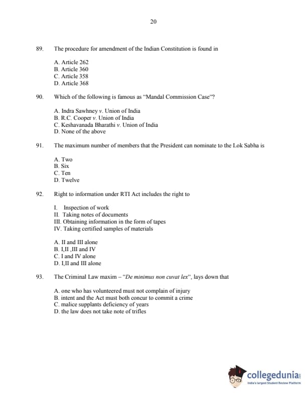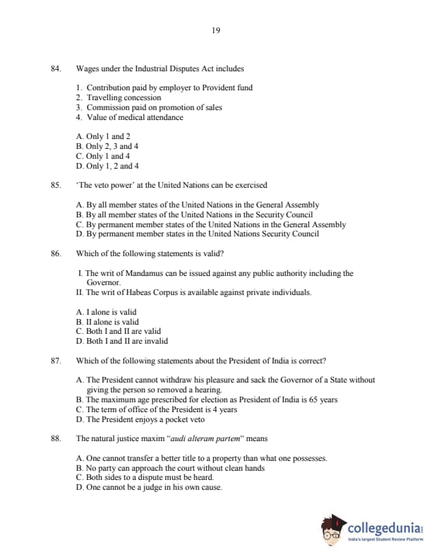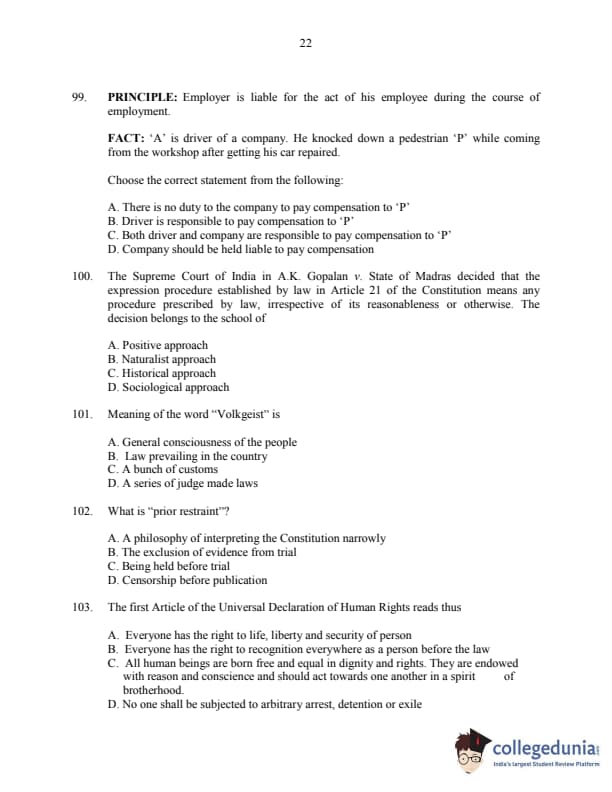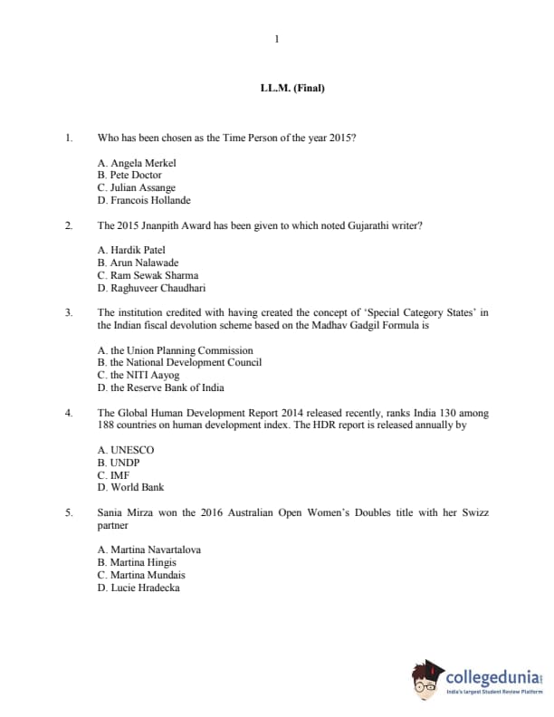 CUSAT CAT 2016 LLM Question Paper with Answer Key PDFs