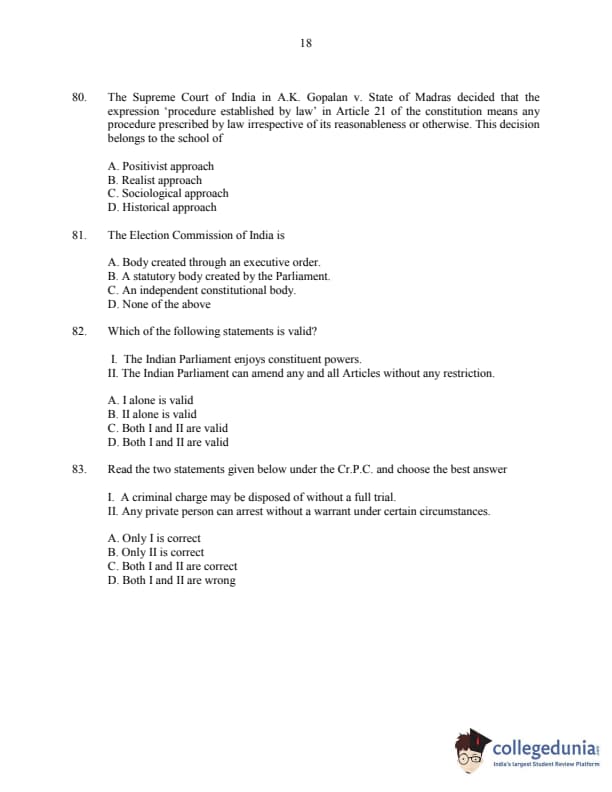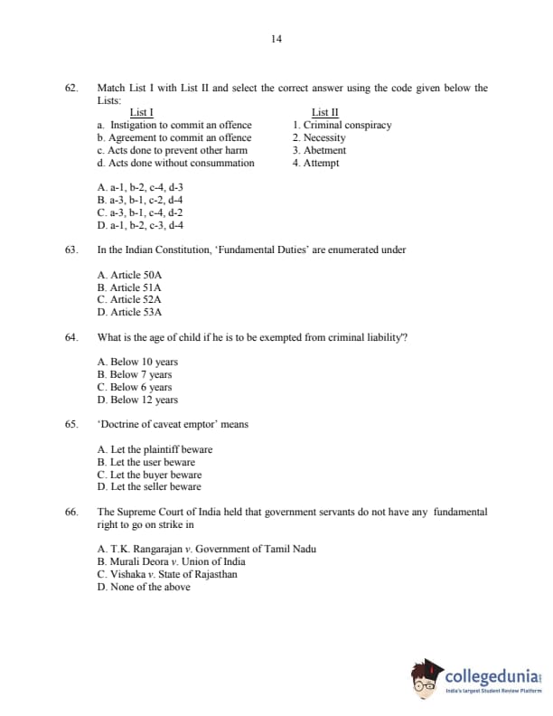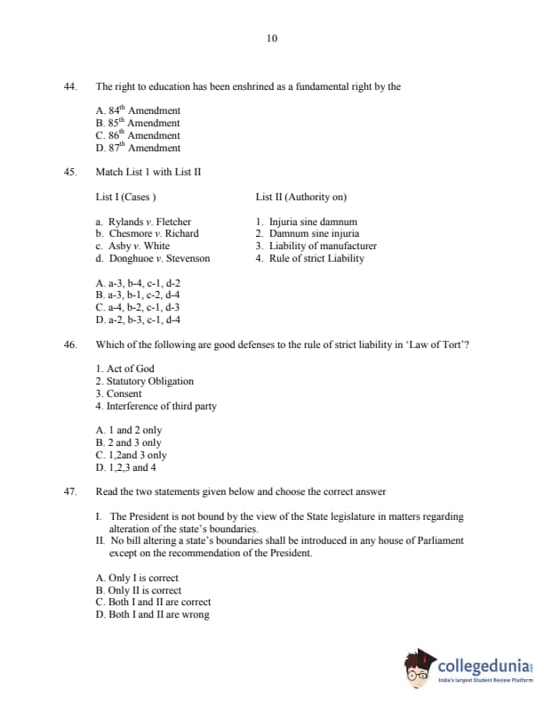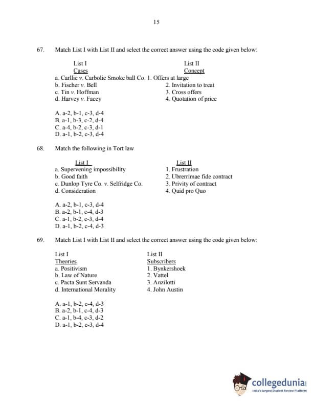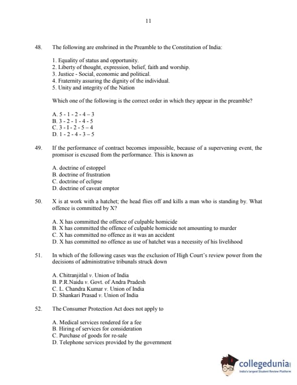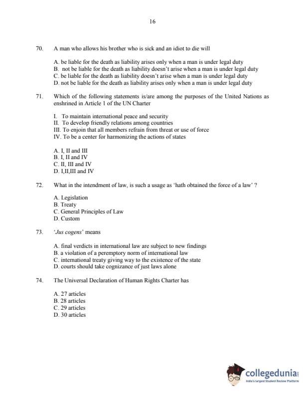 | CUSAT CAT 2016 LLM Question Paper PDF | CUSAT CAT 2016 LLM Answer Key PDF |