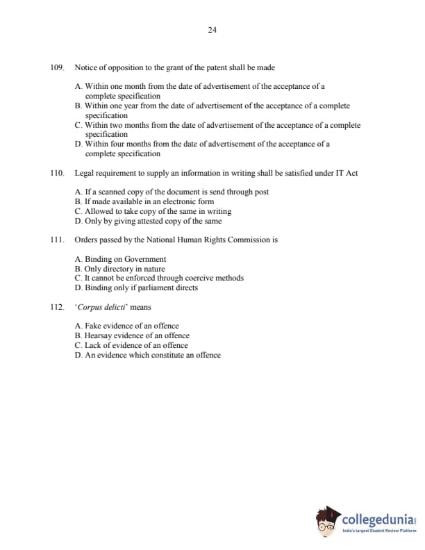 CUSAT CAT 2016 LLM Question paper with answer key pdf is available for download. The exam was successfully organized by Cochin University of Science & Technology. The question paper comprised a total of 150 questions.