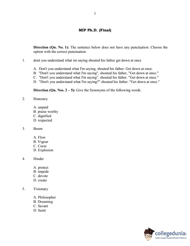 | CUSAT CAT 2016 MIP Ph.D Question Paper PDF | CUSAT CAT 2016 MIP Ph.D Answer Key PDF |