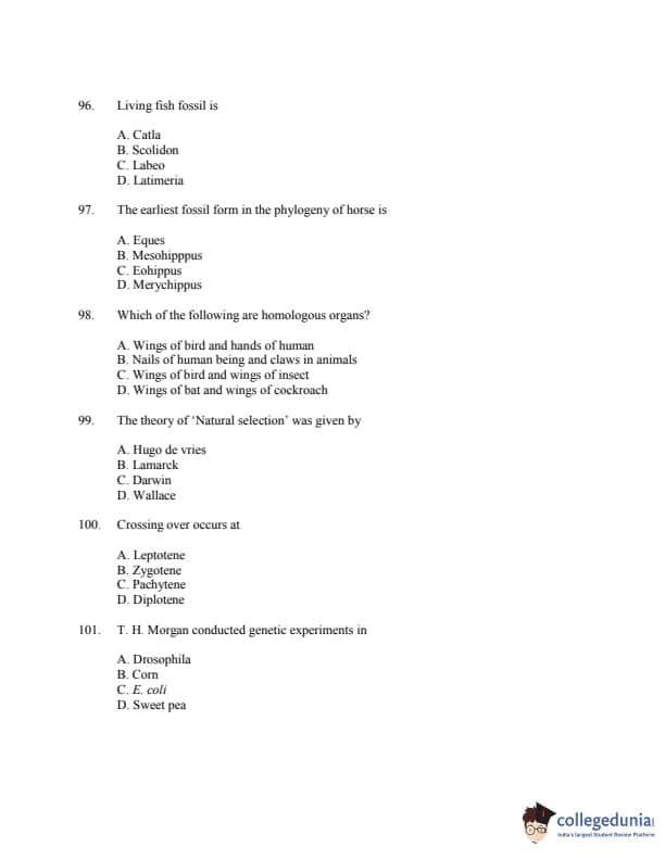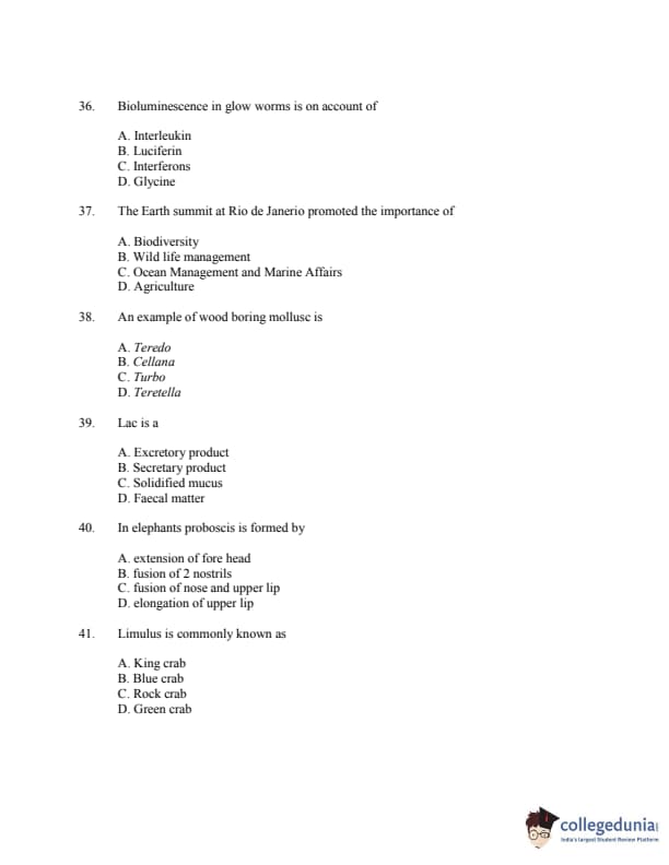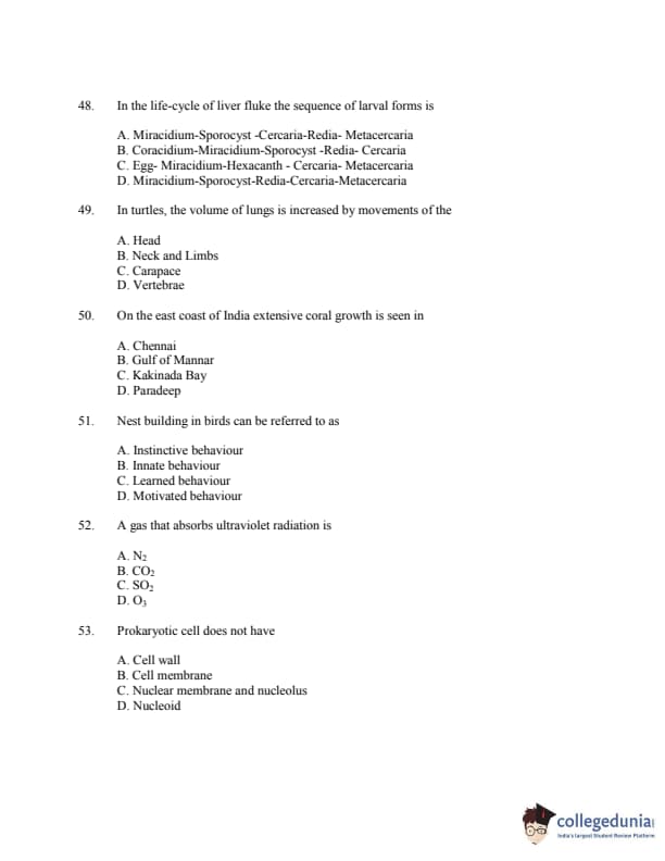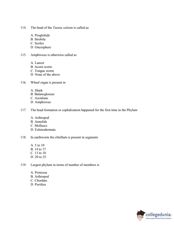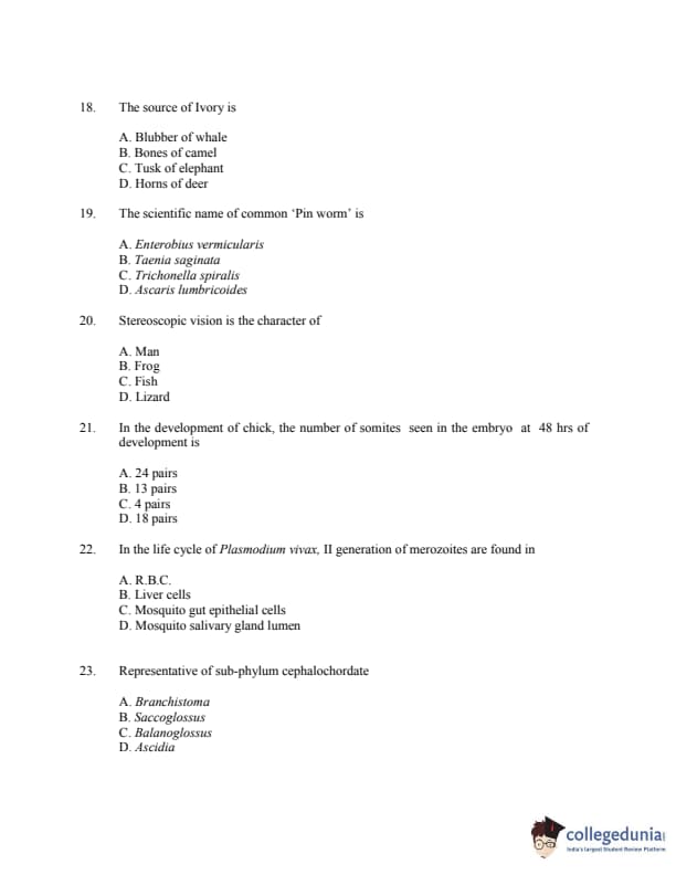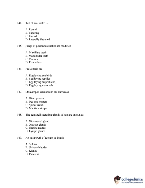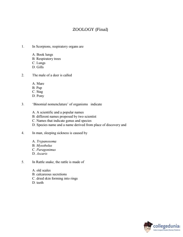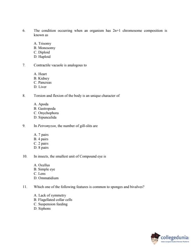 CUSAT CAT 2016 Zoology Question paper with answer key pdf is available for download. The exam was successfully organized by Cochin University of Science & Technology. The question paper comprised a total of 150 questions.