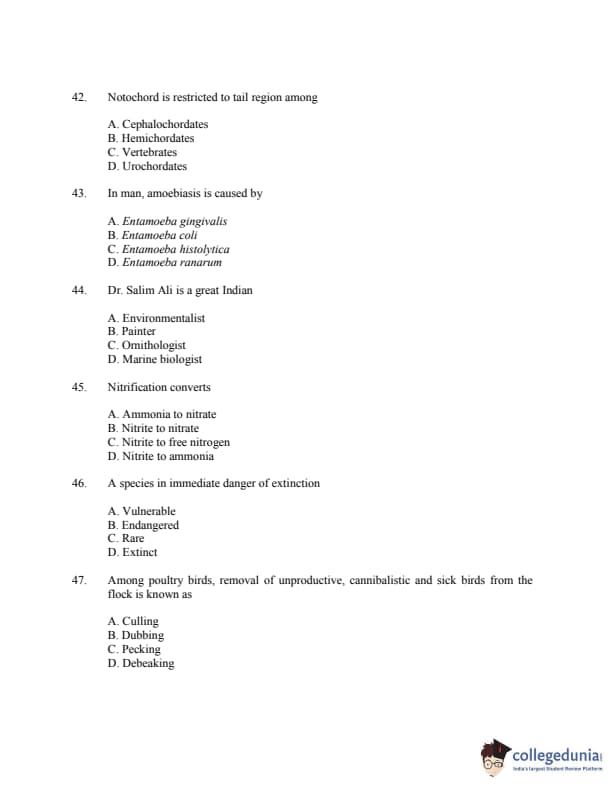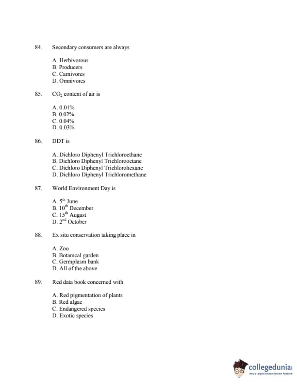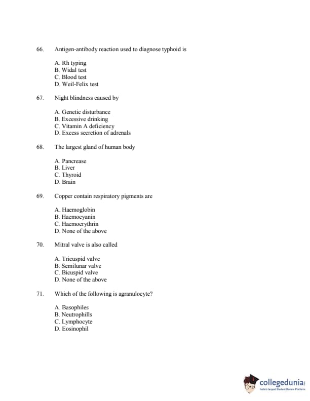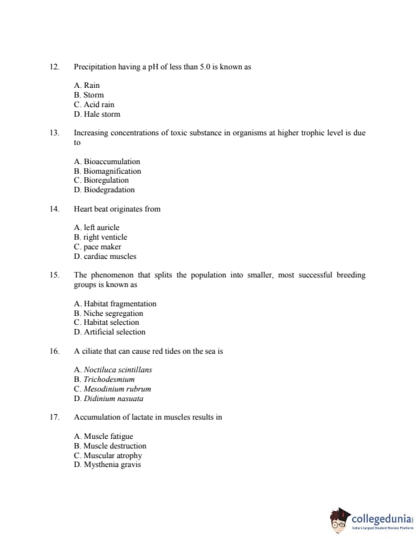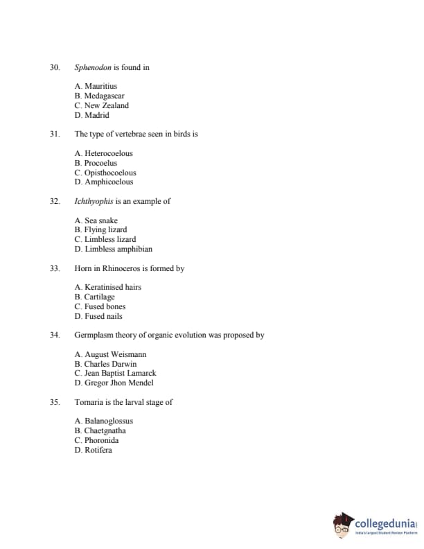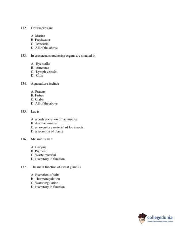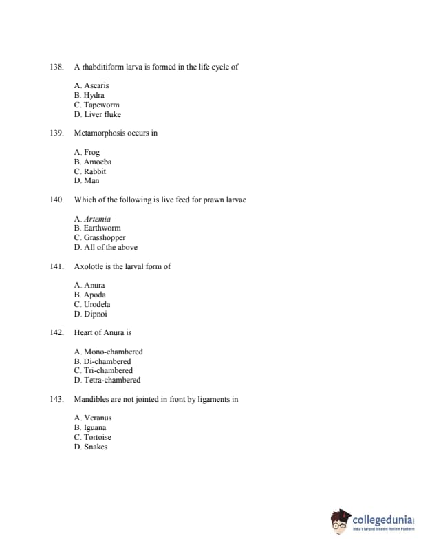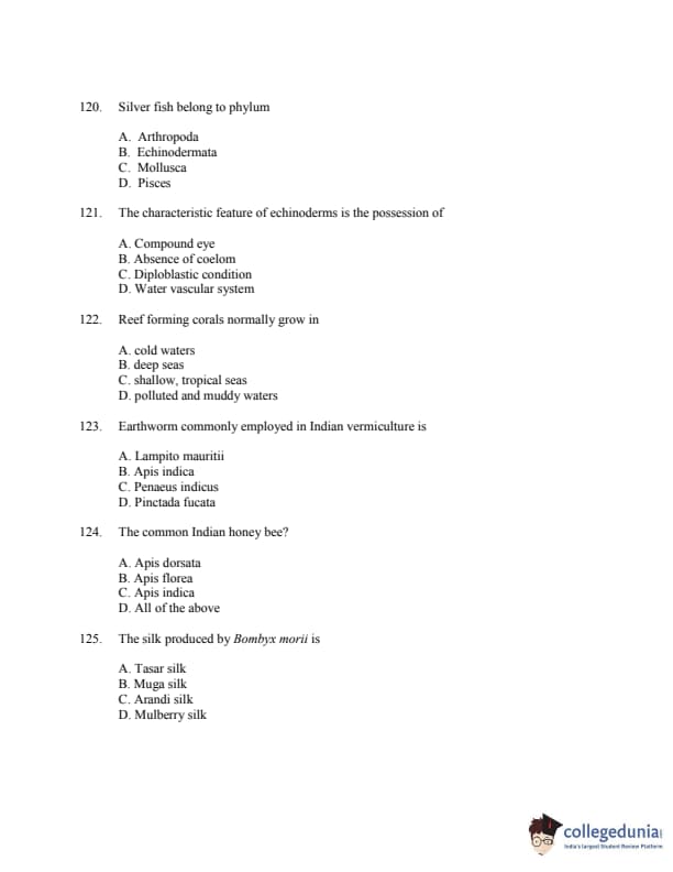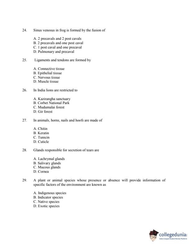 CUSAT CAT 2016 Zoology Question paper with answer key pdf is available for download. The exam was successfully organized by Cochin University of Science & Technology. The question paper comprised a total of 150 questions.