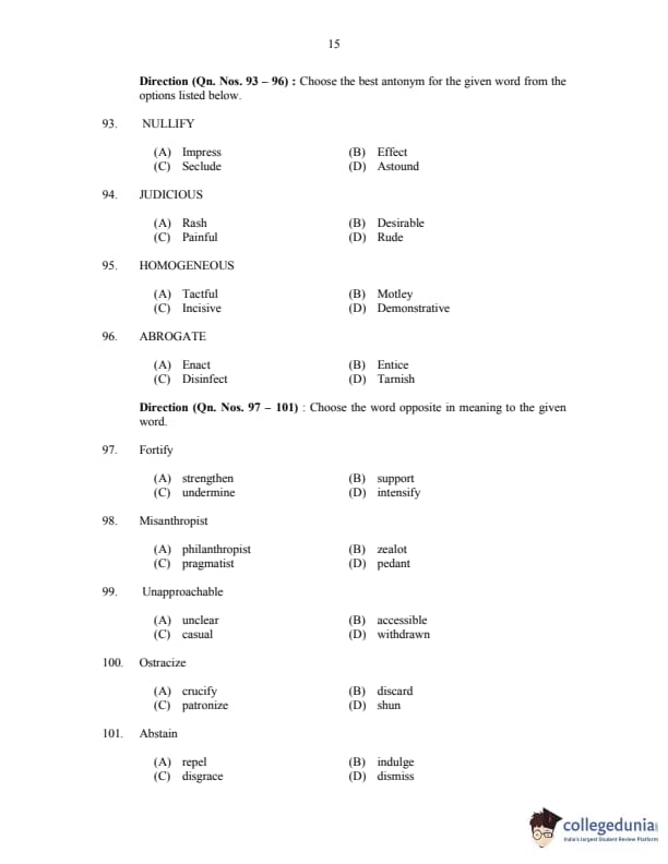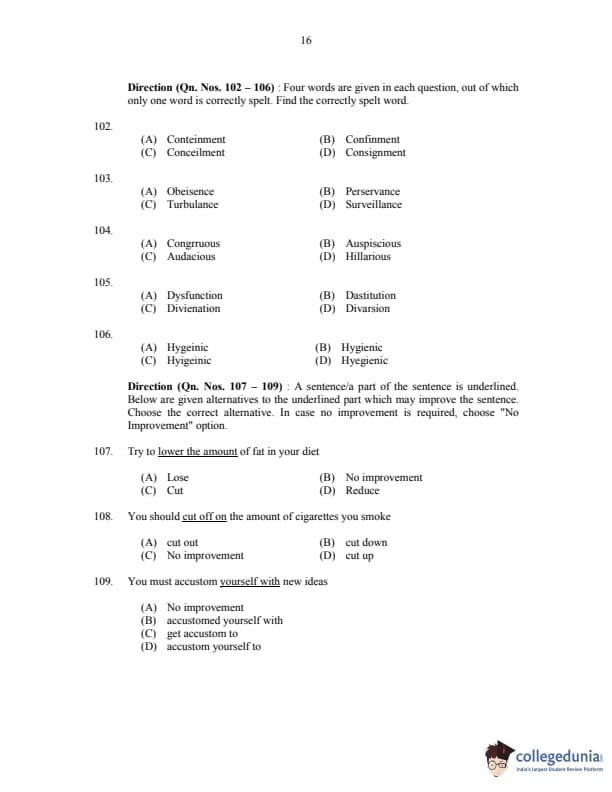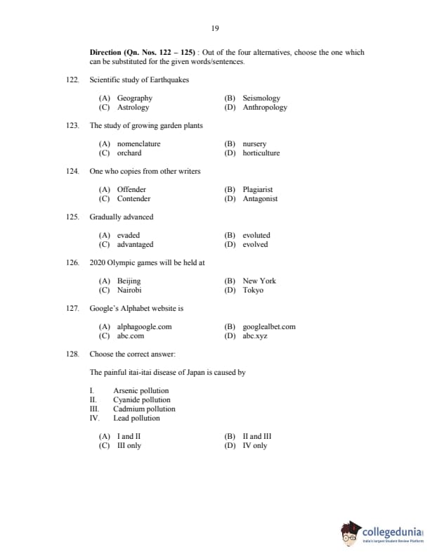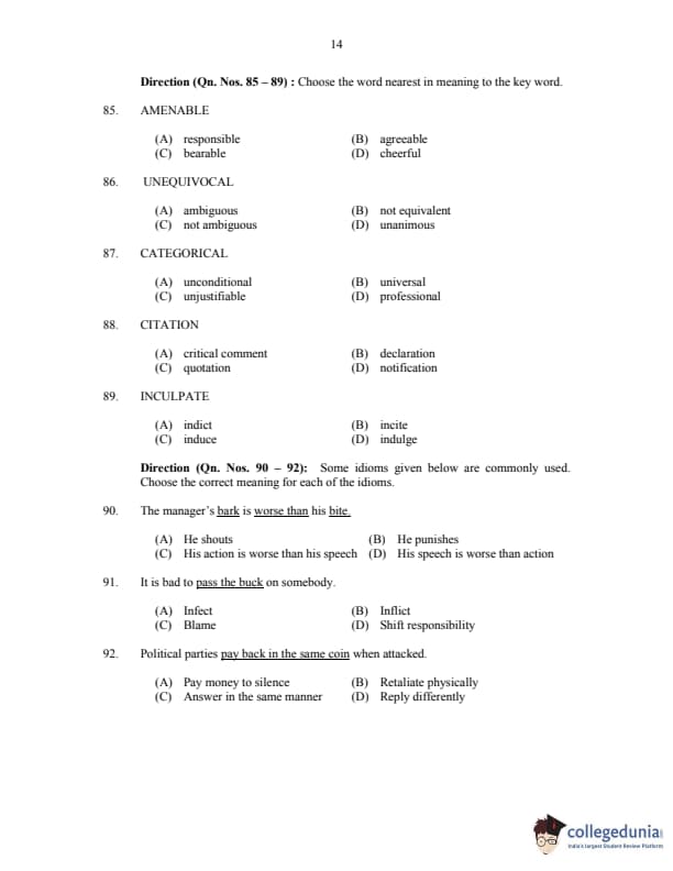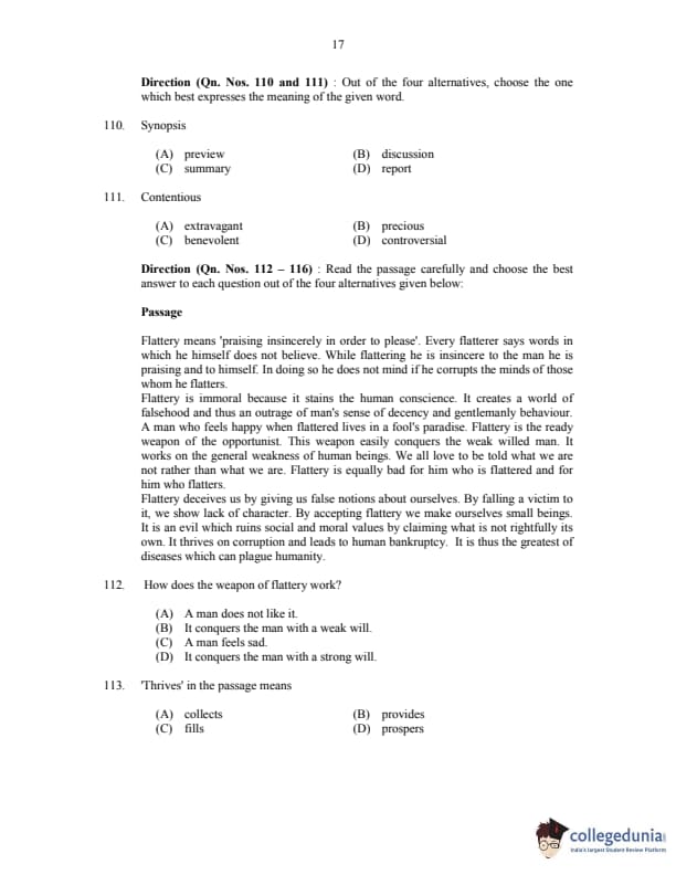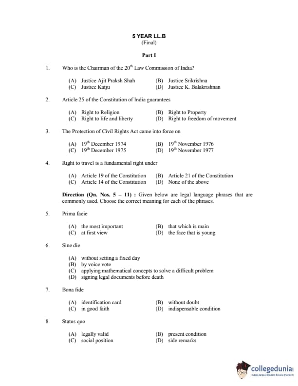 | CUSAT CAT 2017 5 Year LLB Question Paper PDF | CUSAT CAT 2017 5 Year LLB Answer Key PDF |