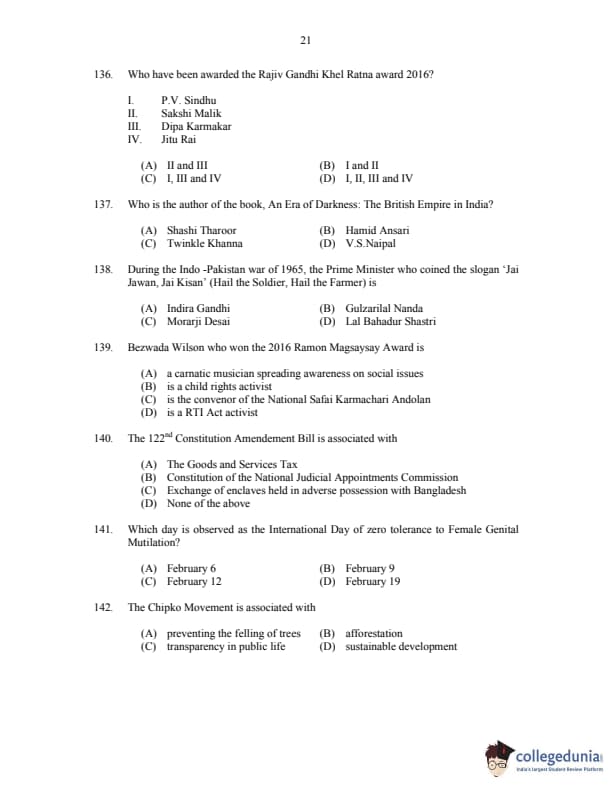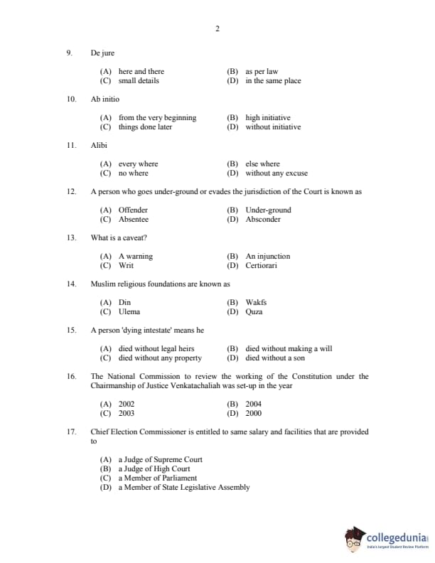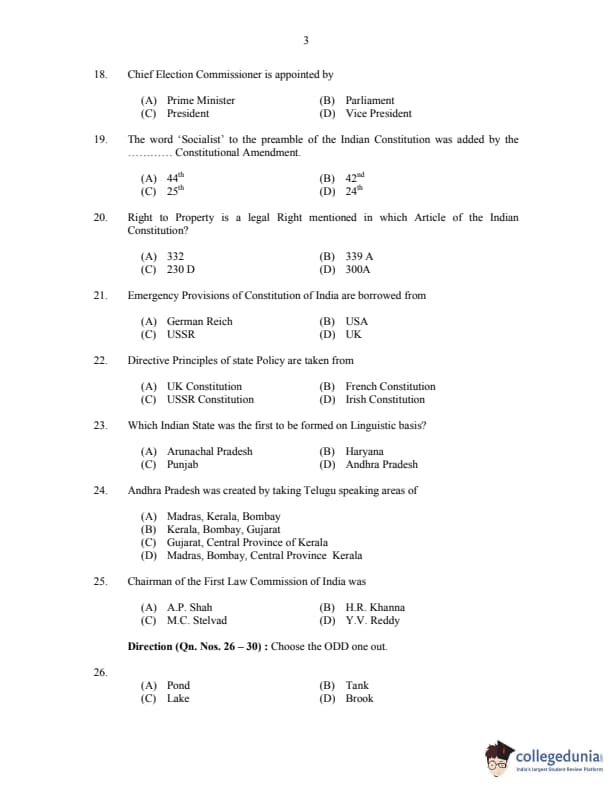 CUSAT CAT 2017 5 Year LLB Question Paper with Answer Key PDFs